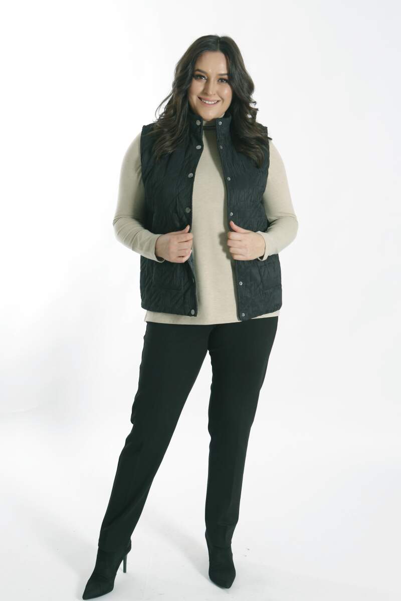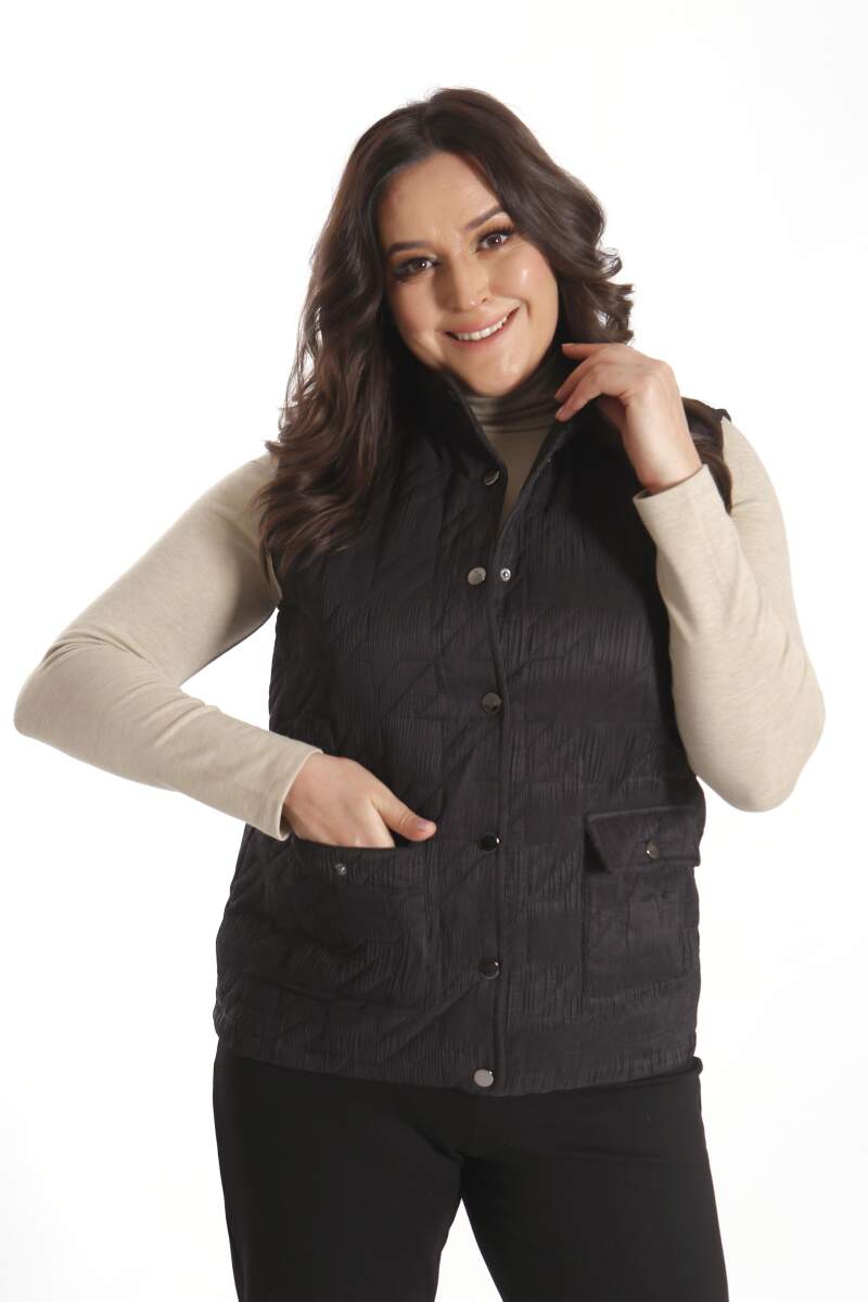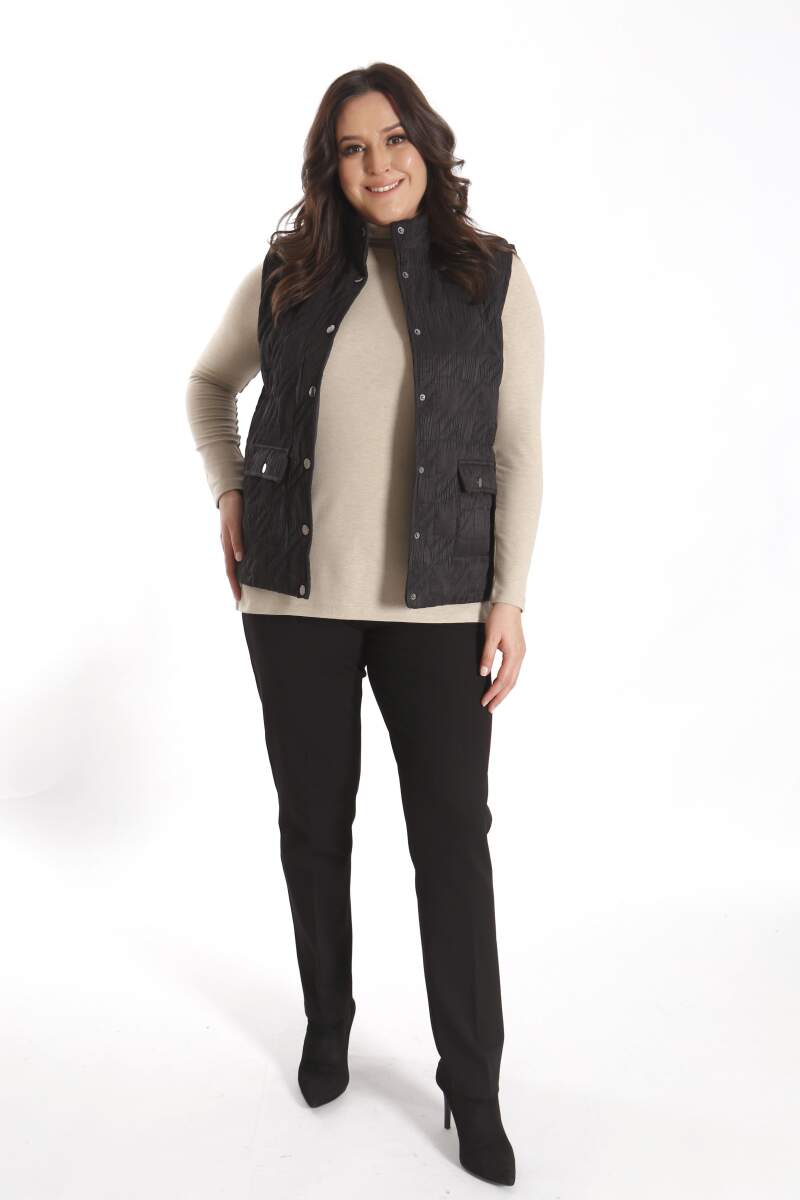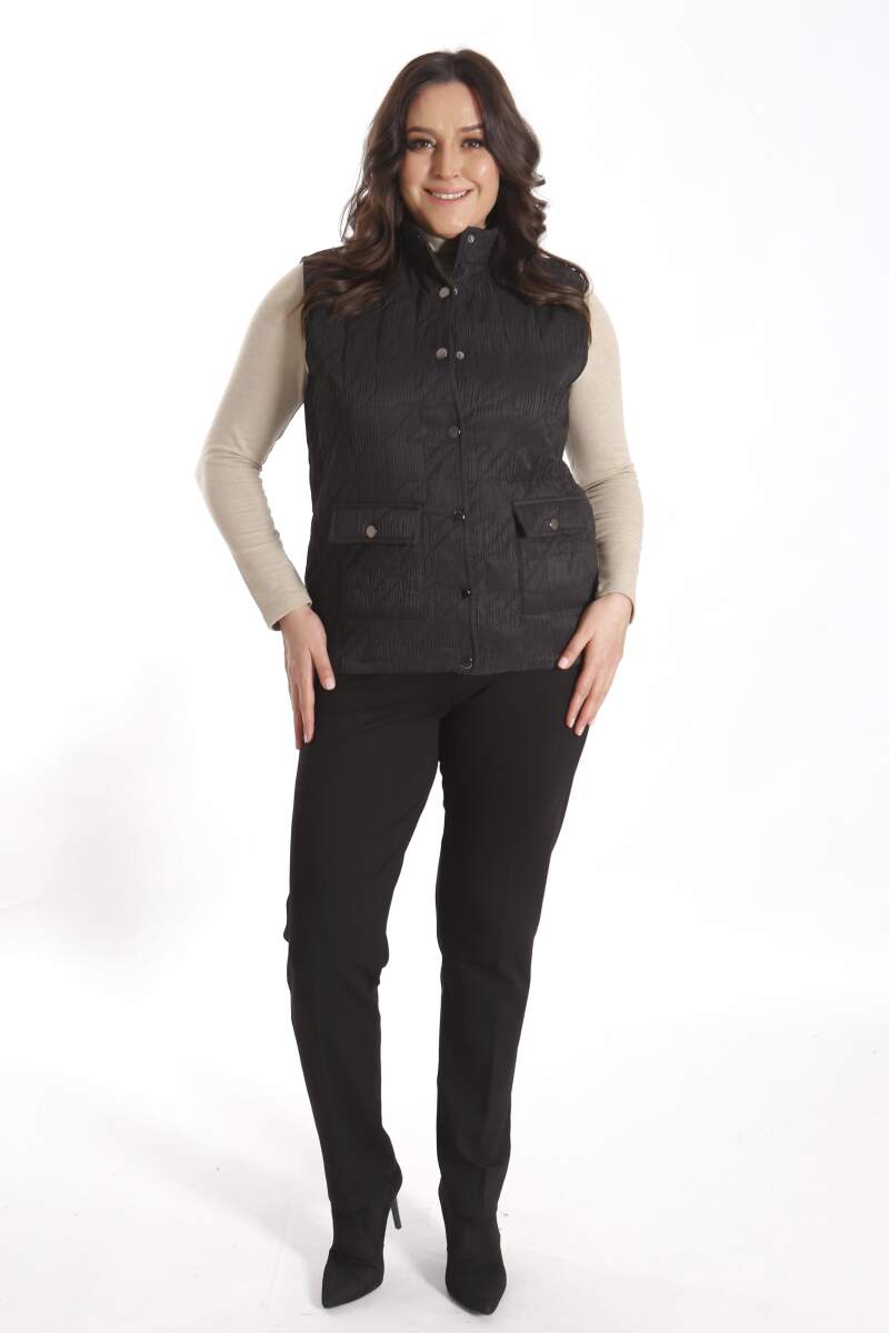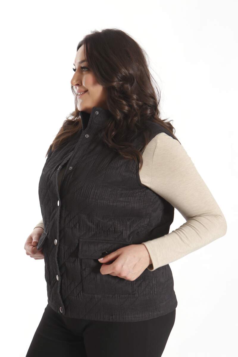 Angelino Büyük Çıt Çıt Düğmeli Kapitone Siyah Yelek modeli; hoş, yumuşak dokusu ile soğuk havalarda bile şıklığın mümkün olabildiğini, muhteşem görüntüsüyle sizlere kanıtlıyor. Ön kapitone detaylı yelek modeli; yaka duruşu, rahat kesimi ve önünde bulunan düğme detayı ile sizleri ileri seviye şıklığa davet ediyor.
