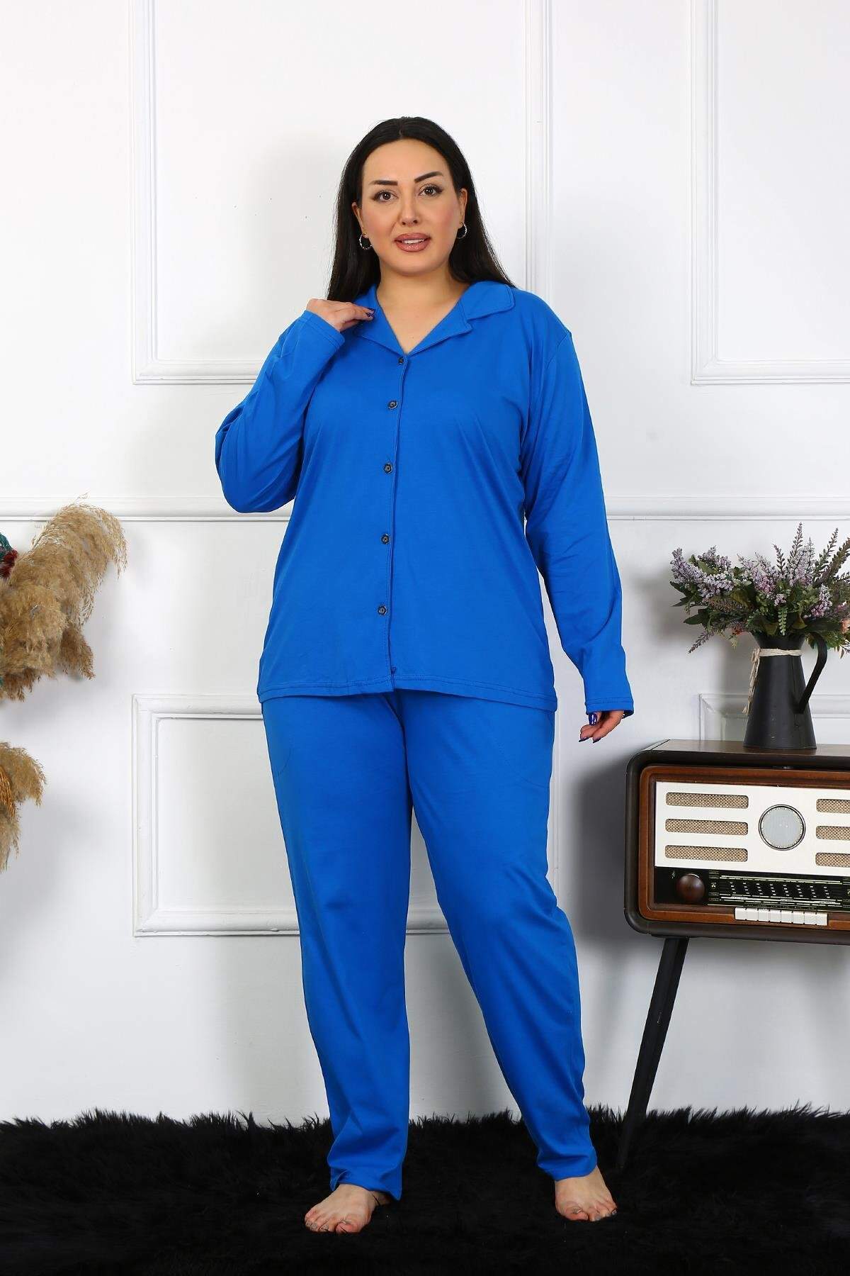 Kadın Pamuklu Cepli Uzun Kol Büyük Beden Pijama Takımı