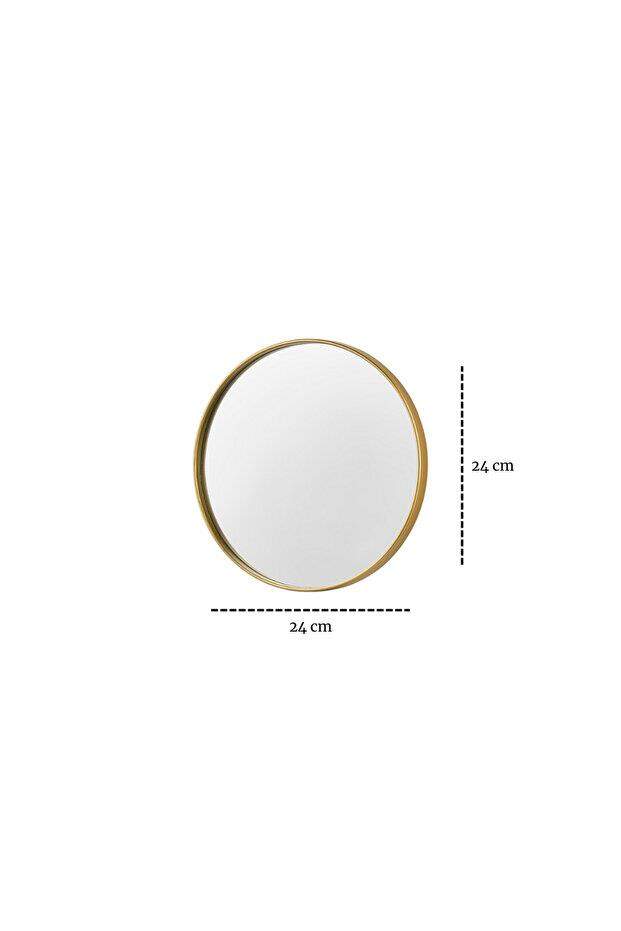 Evinize zarif bir dokunuş katmak istiyorsanız bu altın çerçeveli yuvarlak dekoratif ayna, aradığınız parça! 24 cm çapındaki kompakt formu ve 2 cm kalınlığı ile hem duvar aynası olarak hem de konsol, makyaj masası ya da giriş dekorasyonunda masa üstü ayna olarak kullanılabilir.
