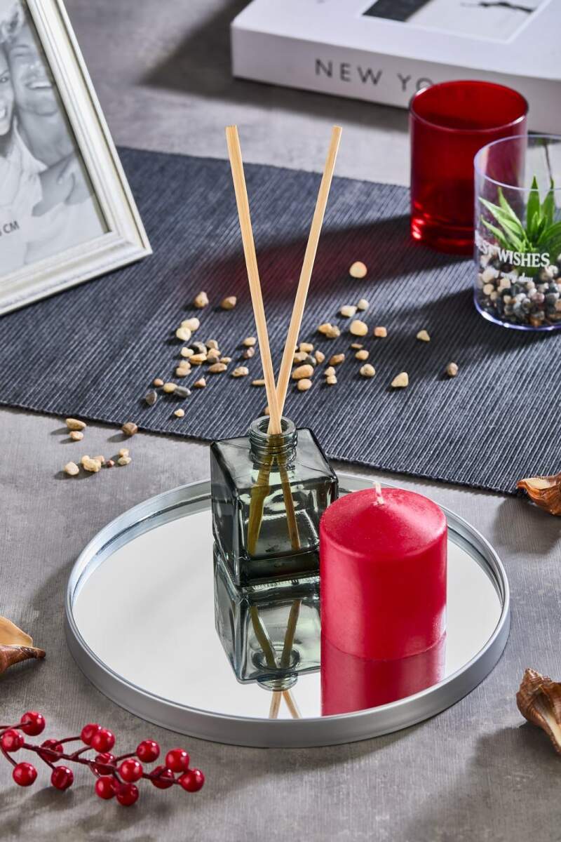 Yuvarlak Aynalı Gümüş 24x24 İkramlık Kahve ve Çay Sunum Tepsisi (Çok Amaçlı)