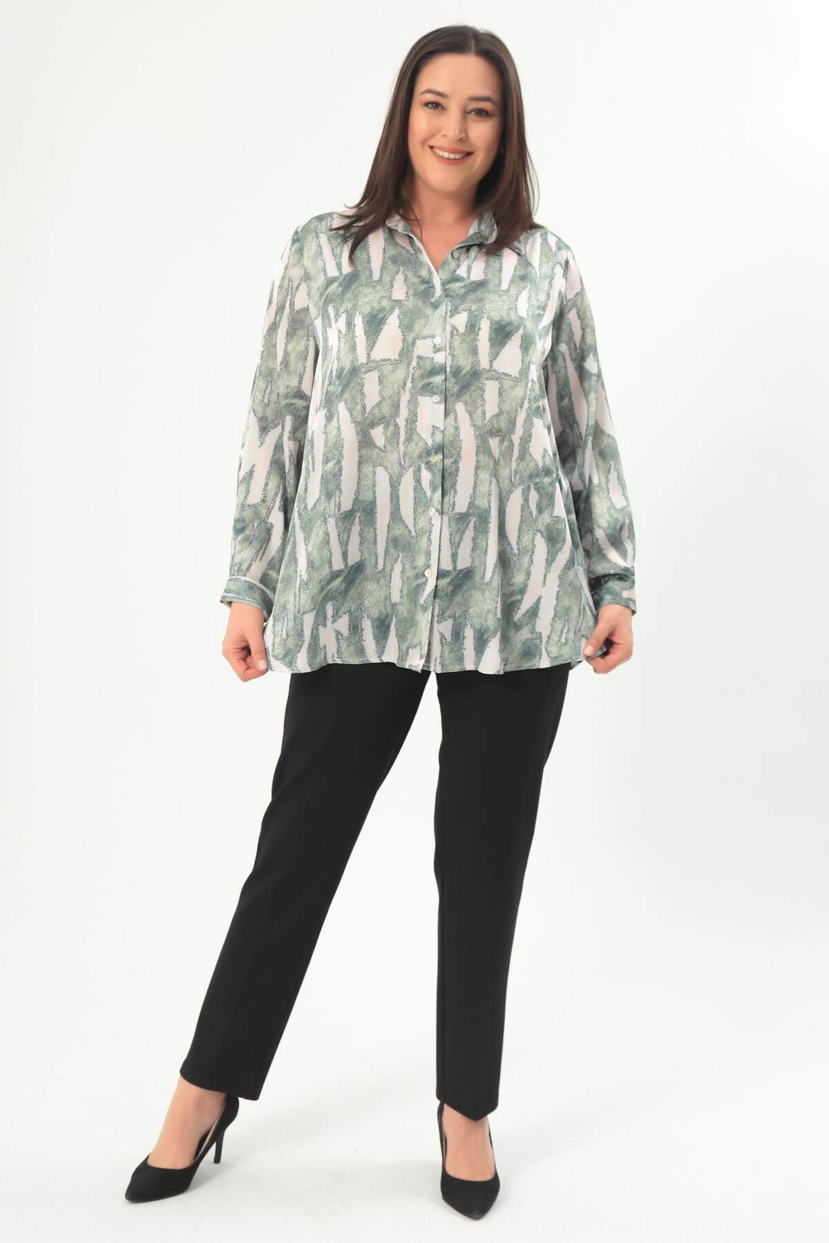 Angelino Büyük Beden Dijital Baskılı Büyük Beden Haki Gömlek, bahar ve yaz aylarının bitmeyen enerjisini basic gömlek ile yakala! Hoş dokusu ve cıvıl cıvıl renkleri ile seni büyüleyecek olan bu parçayı kumaş pantolonlar ile birleştirmek isteyebilirsin. Hafif dokusu ile rahatlığı hissederken en yoğun günlerin bile enerjik geçecek! :)