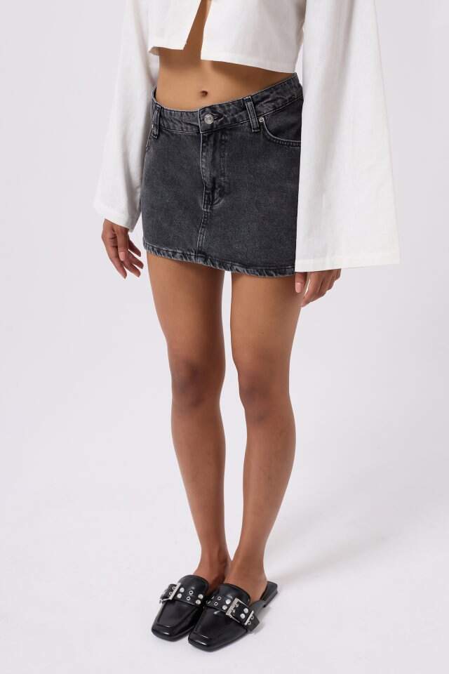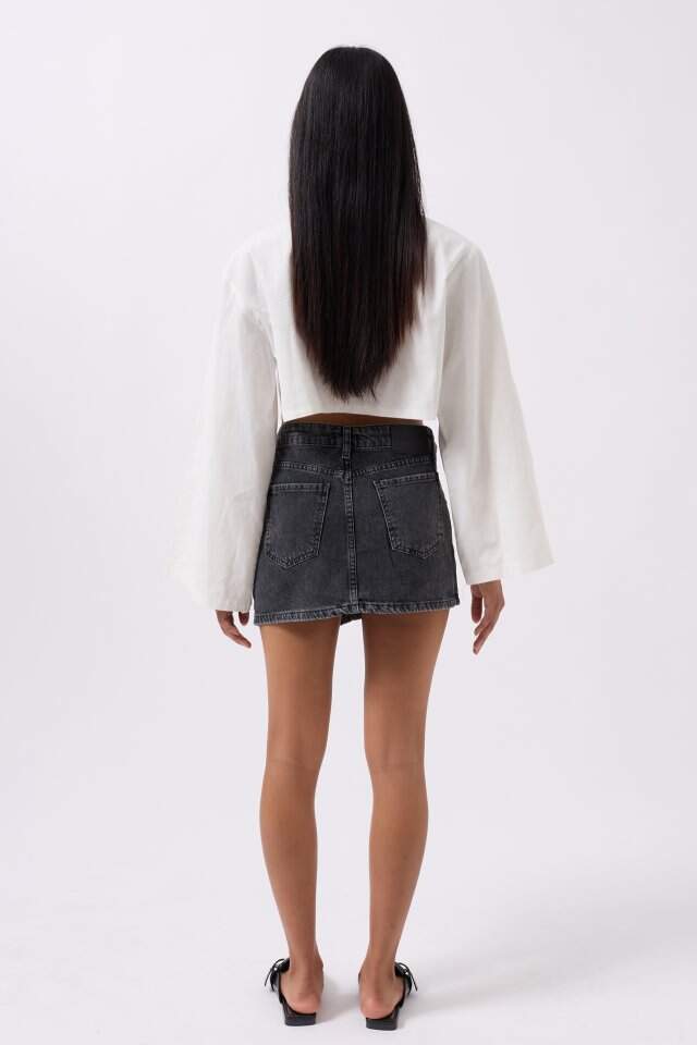 Asimetrik Bel Denim Mini Etek