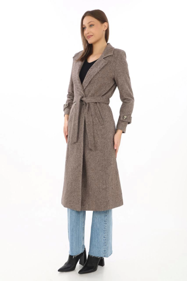 Astarlı Balık Sırtı Kaşmir Kaşe Kaban - Vizon