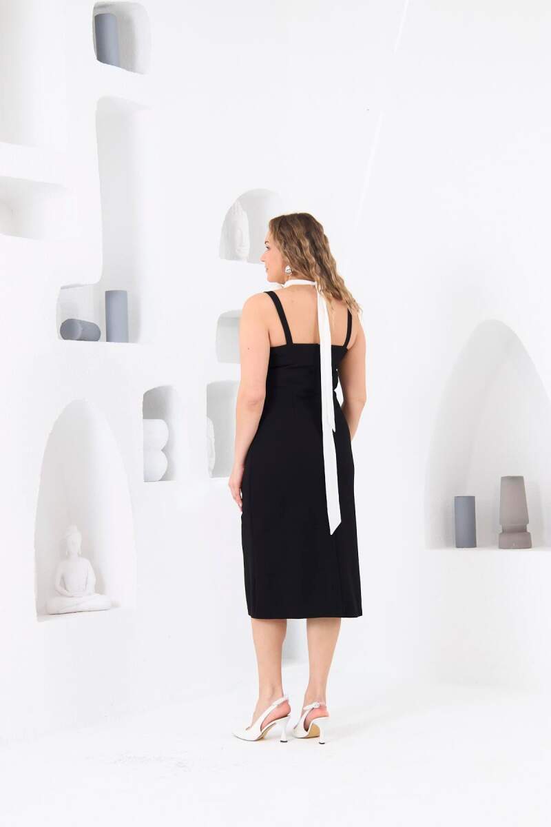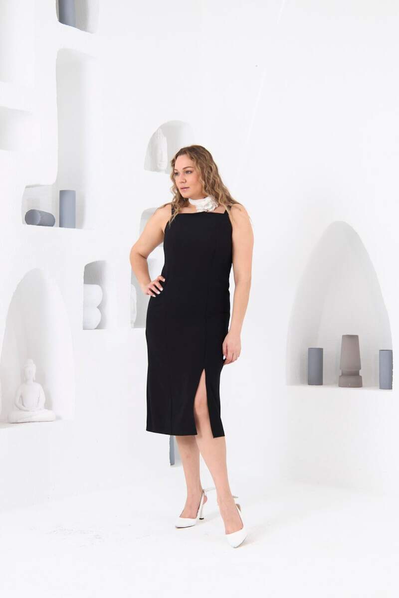 Astarlı Yırtmaç detay Büyük Beden Elbise Siyah