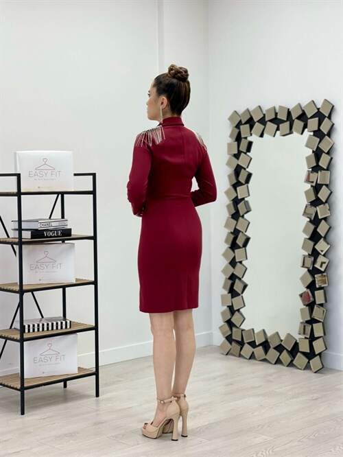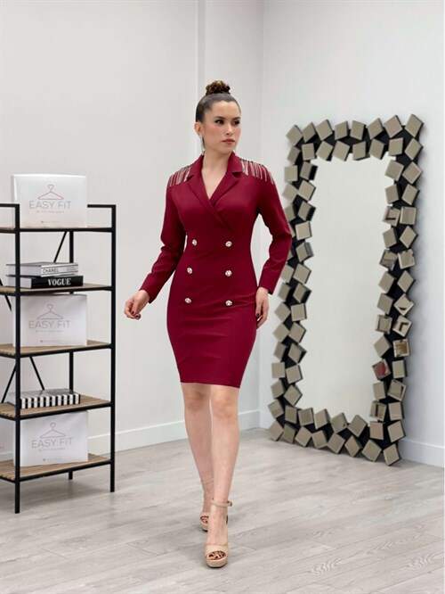 Atlas Kumaş Omuz Püsküllü Ceket Elbise