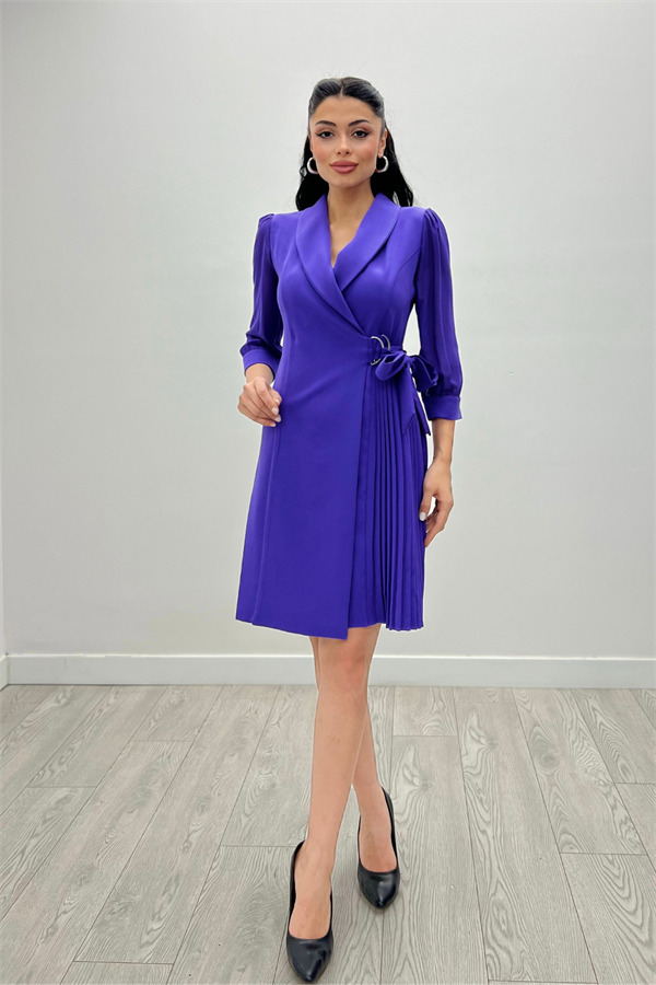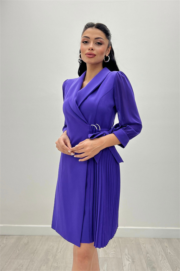 Atlas Kumaş Pliseli Ceket Elbise - MOR