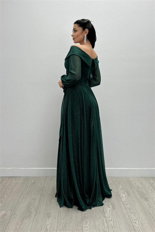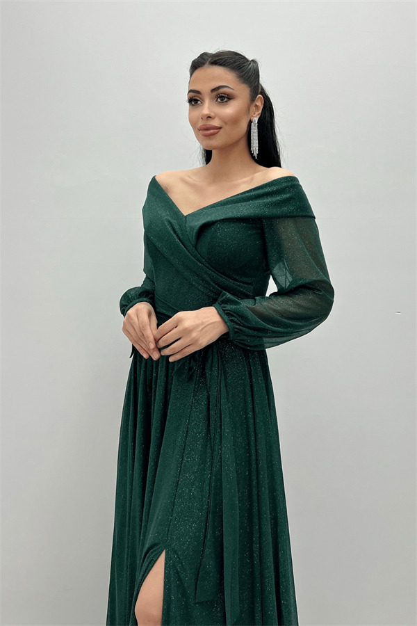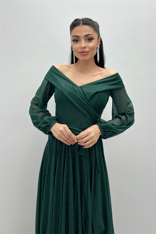 Bağcıklı Kol Kuşaklı Simli Tül Elbise