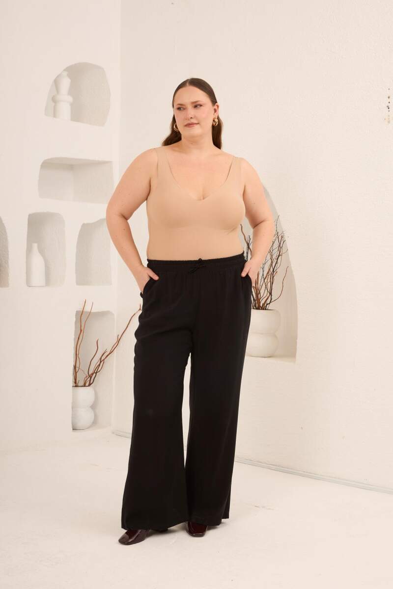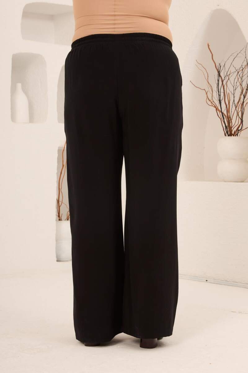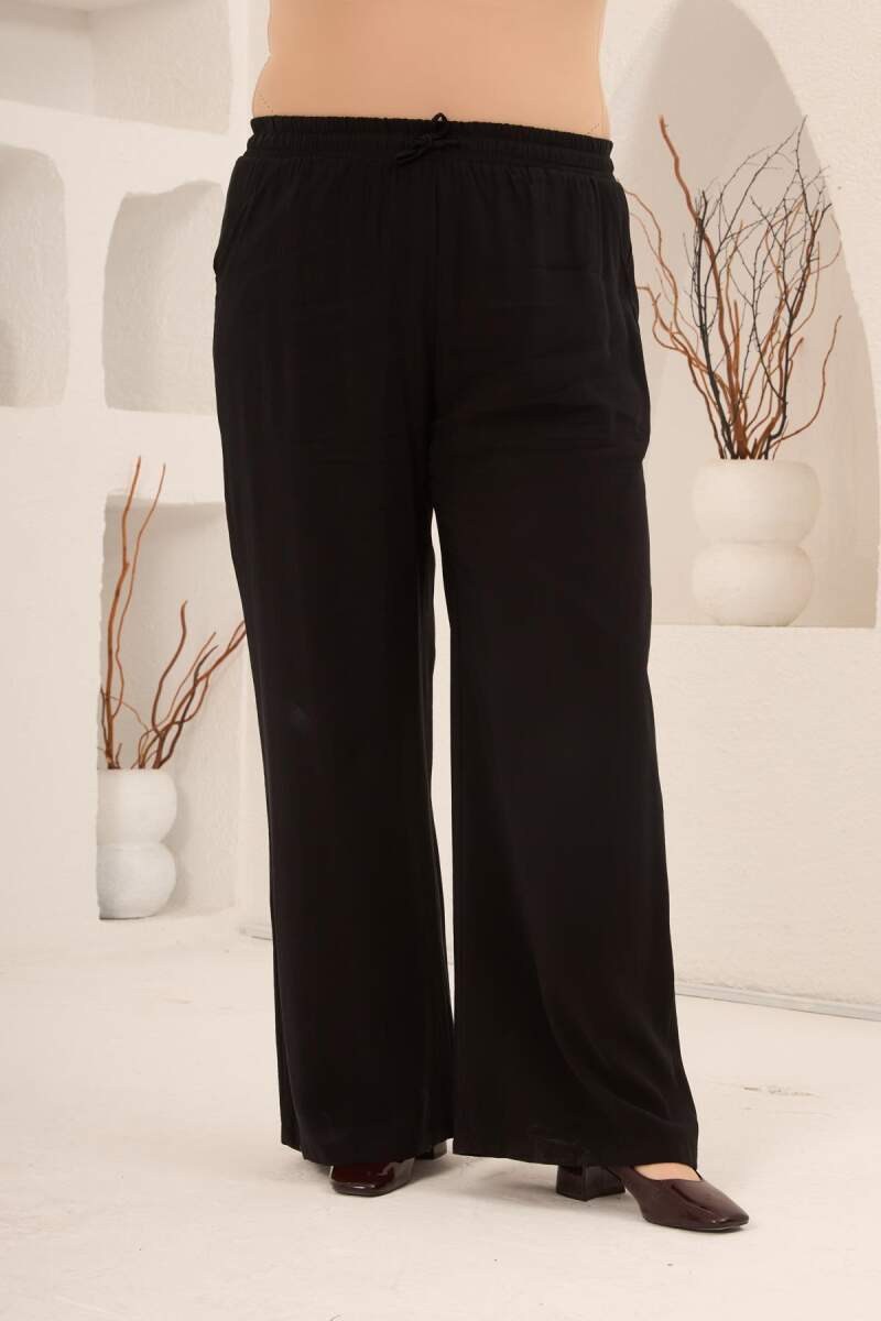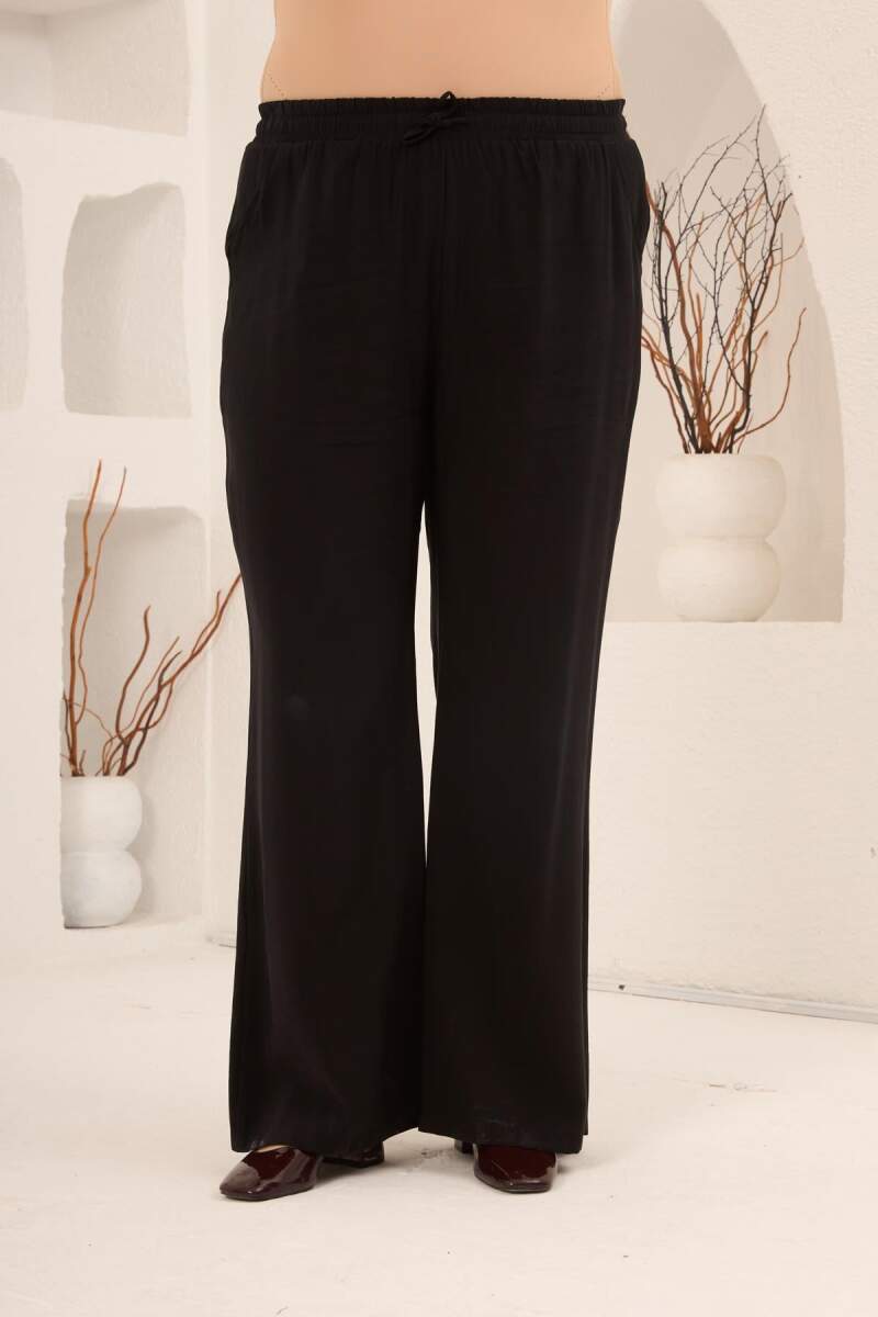 Bel Bağcık Detaylı Beli Lastikli Kadın Büyük Beden Pantolon Siyah