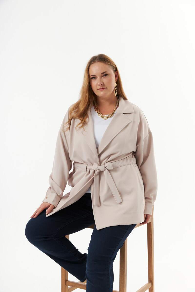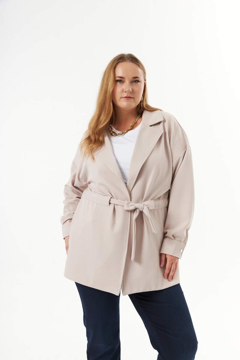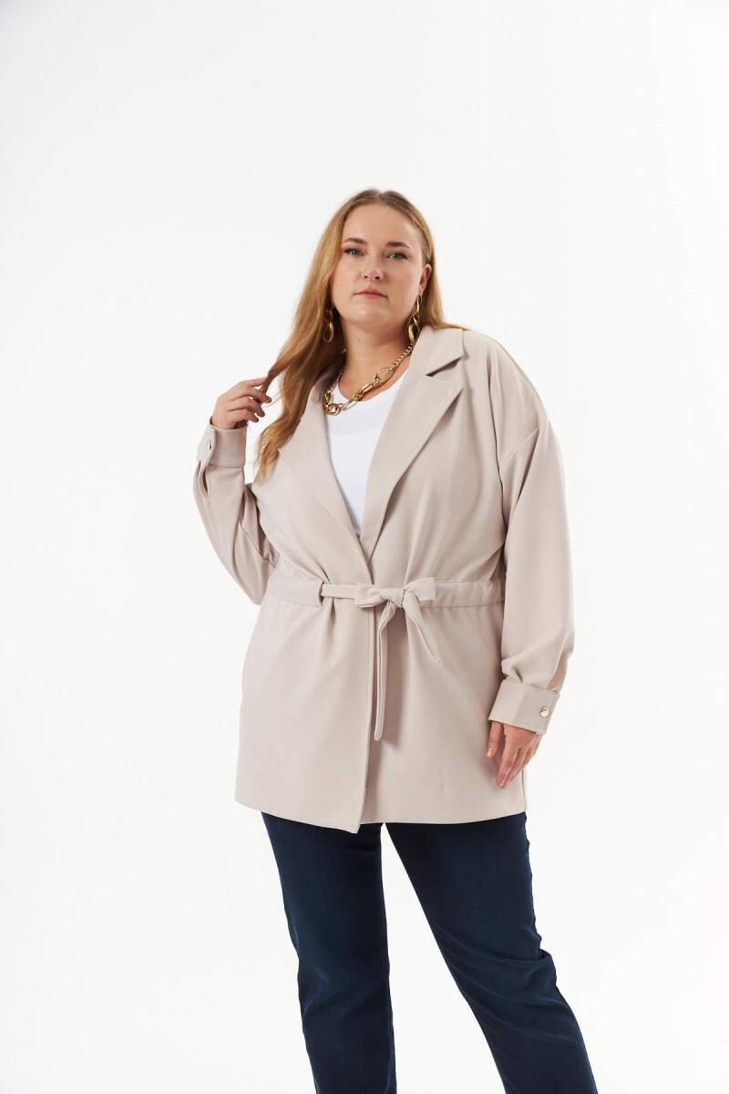 Bel bağcık detaylı büyük beden ceket, şıklığı ve konforu bir araya getiren modern tasarımıyla öne çıkıyor. Her tarza uyum sağlayan bu ceket, hem günlük kombinlerinize zarif bir dokunuş katar hem de vücut hatlarınıza uygun ayarlanabilir bel bağcık detayıyla stilinizi tamamlar.