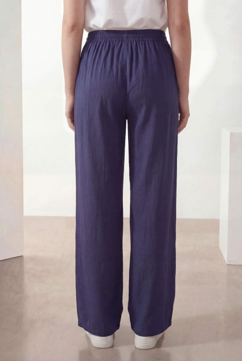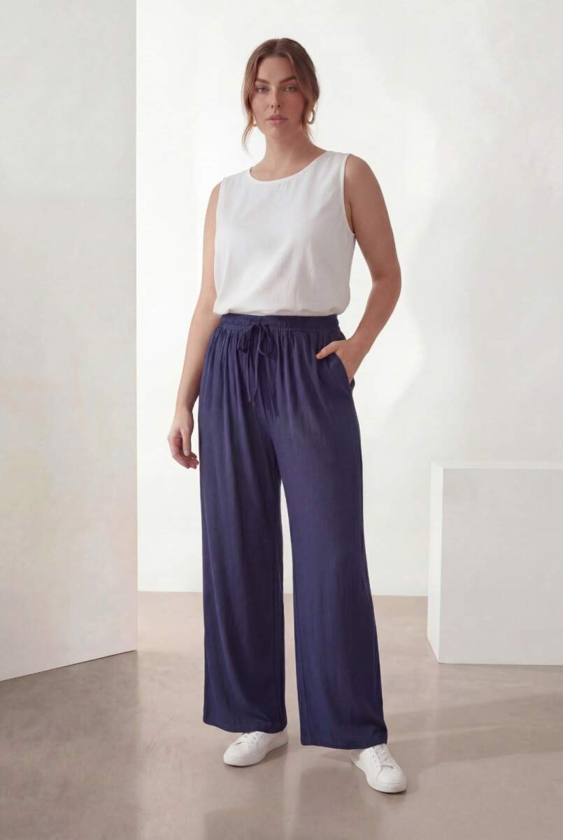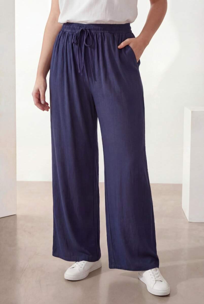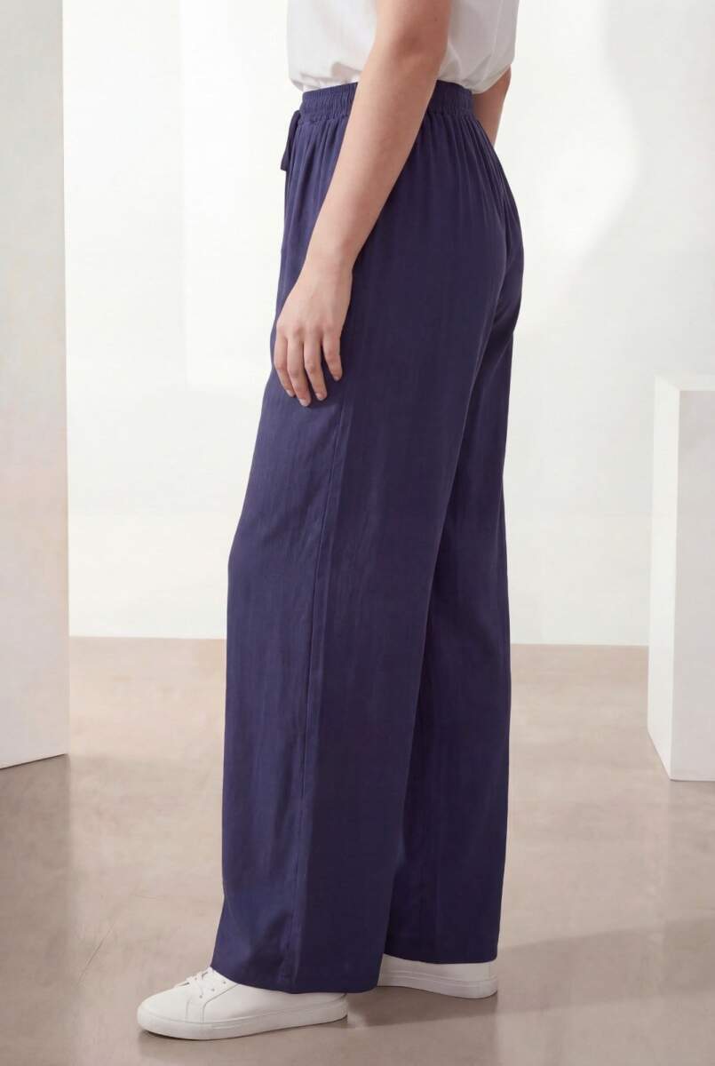 Bel Lastikli Bol Paça Büyük Beden Kadın Pantolon Lacivert