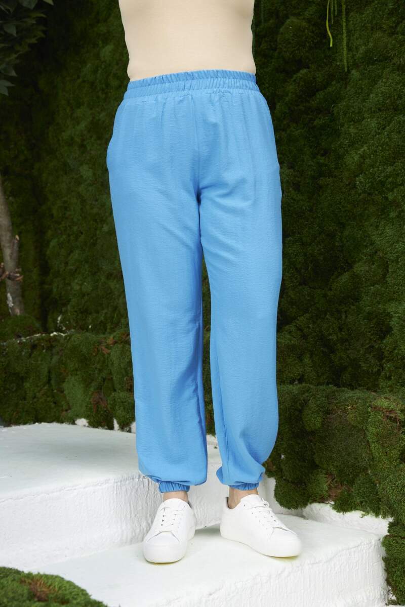 Bel ve Paça Lastikli Aerobin Büyük Beden Mavi Pantolon