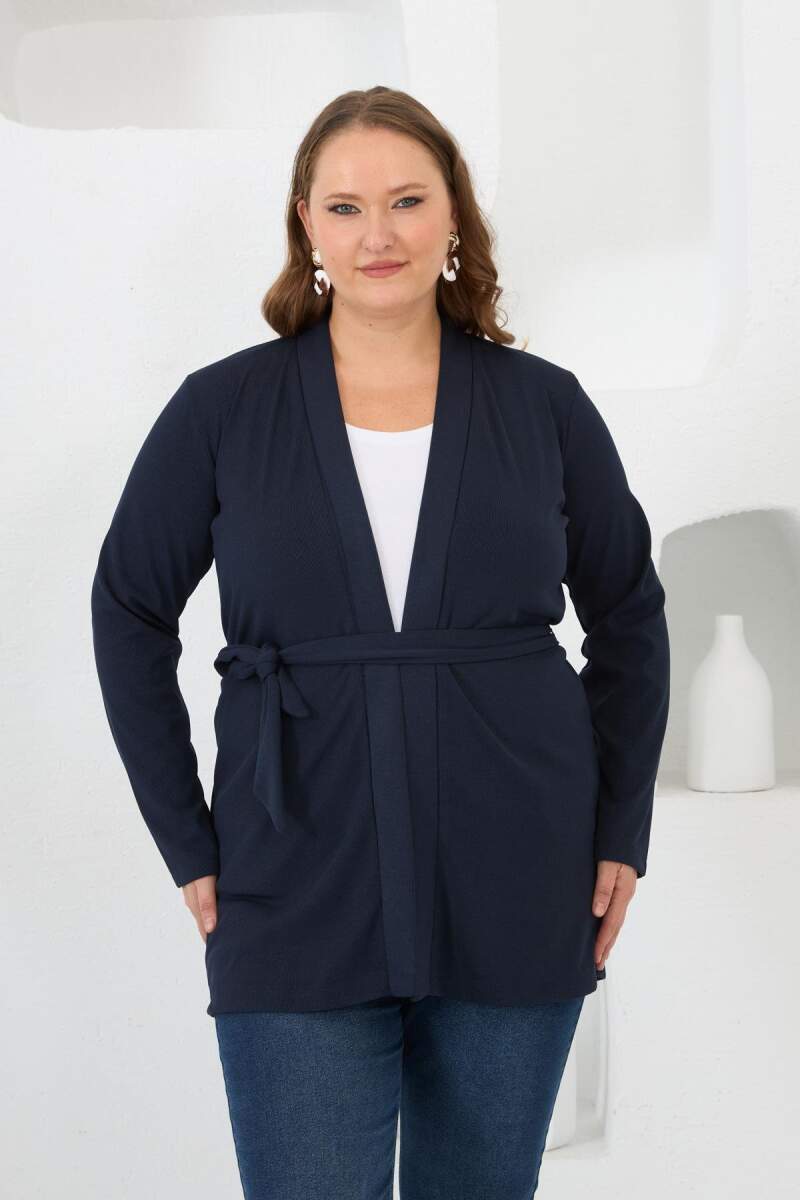 Belden Bağlamalı Örme Büyük Beden Hırka Lacivert