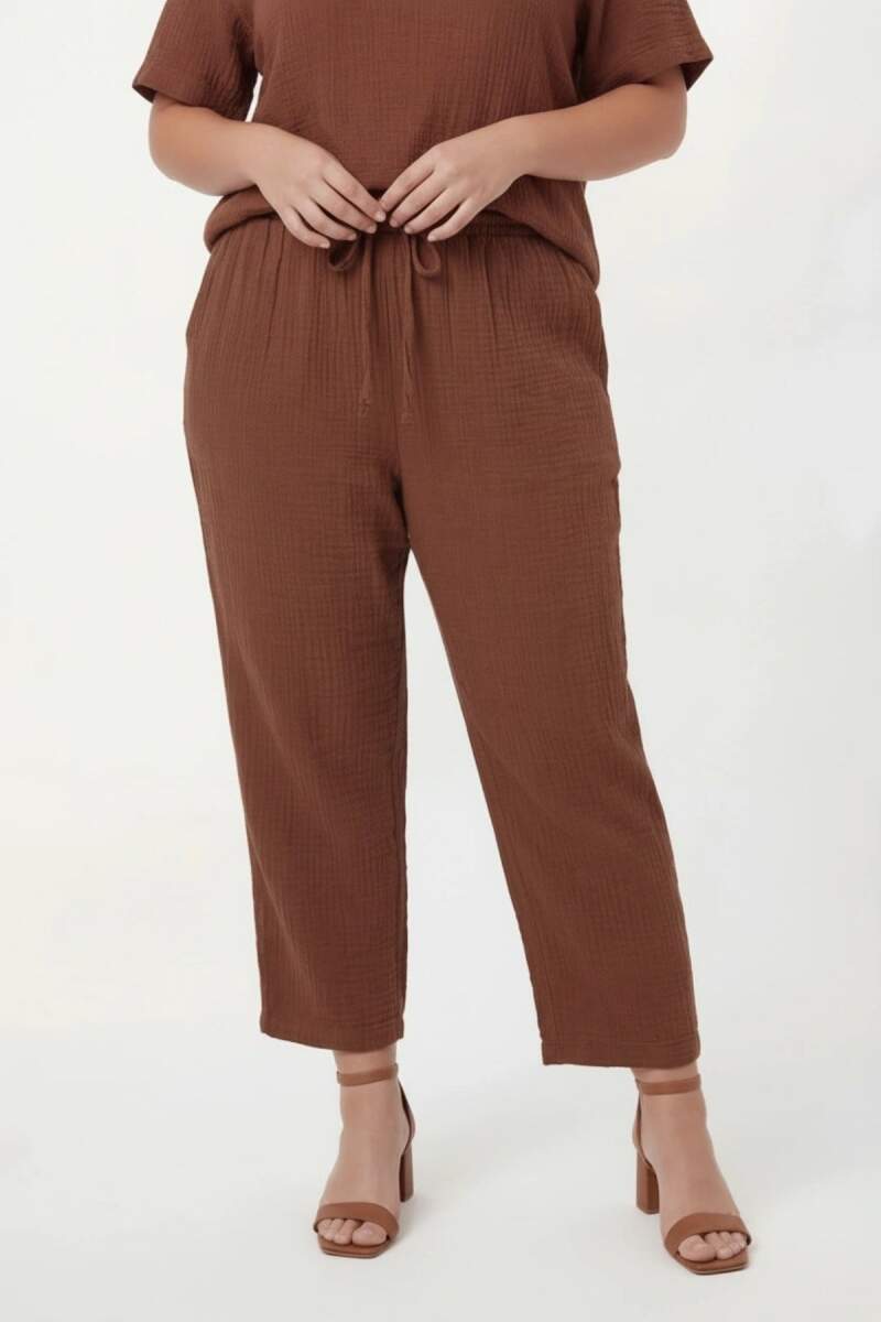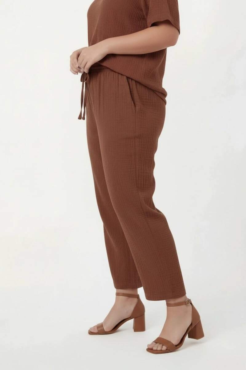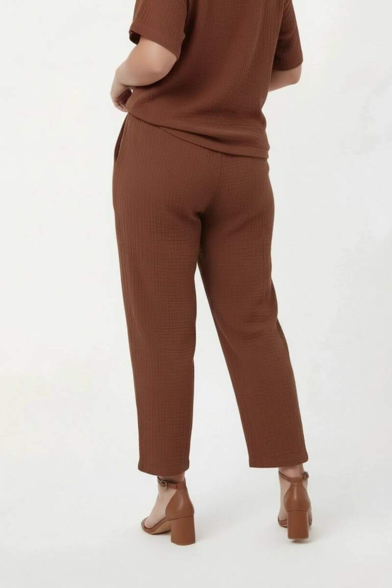Beli Lastikli Bağcıklı Kadın Büyük Beden Pantolon Kahve