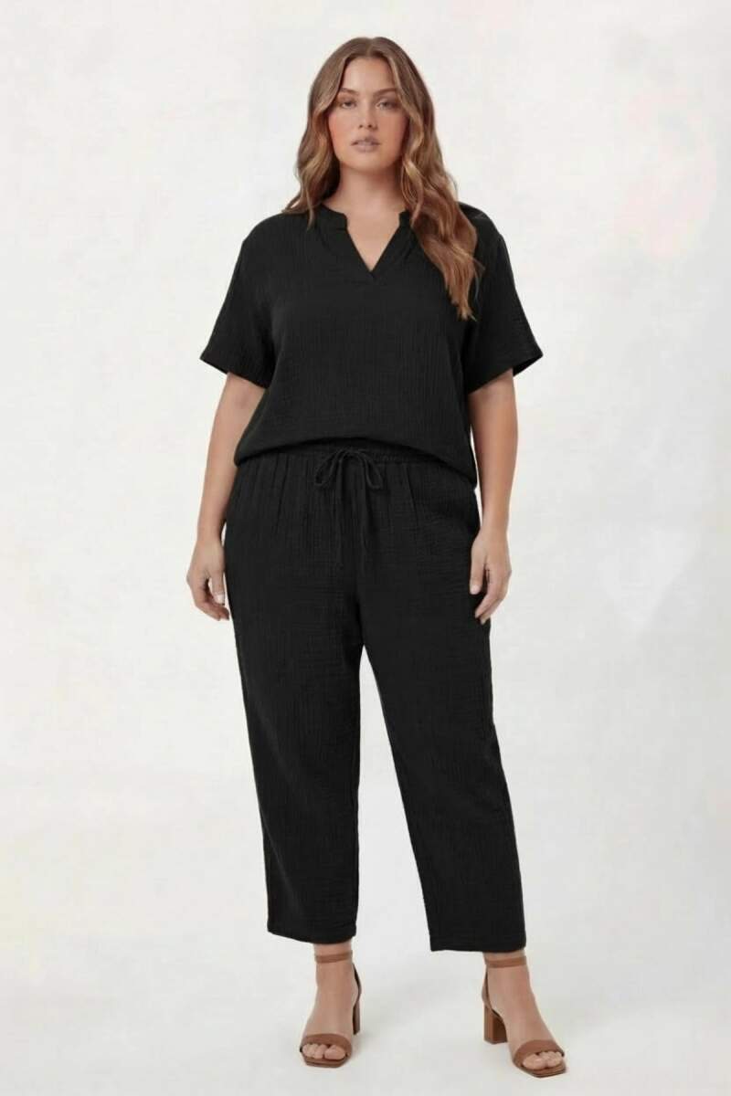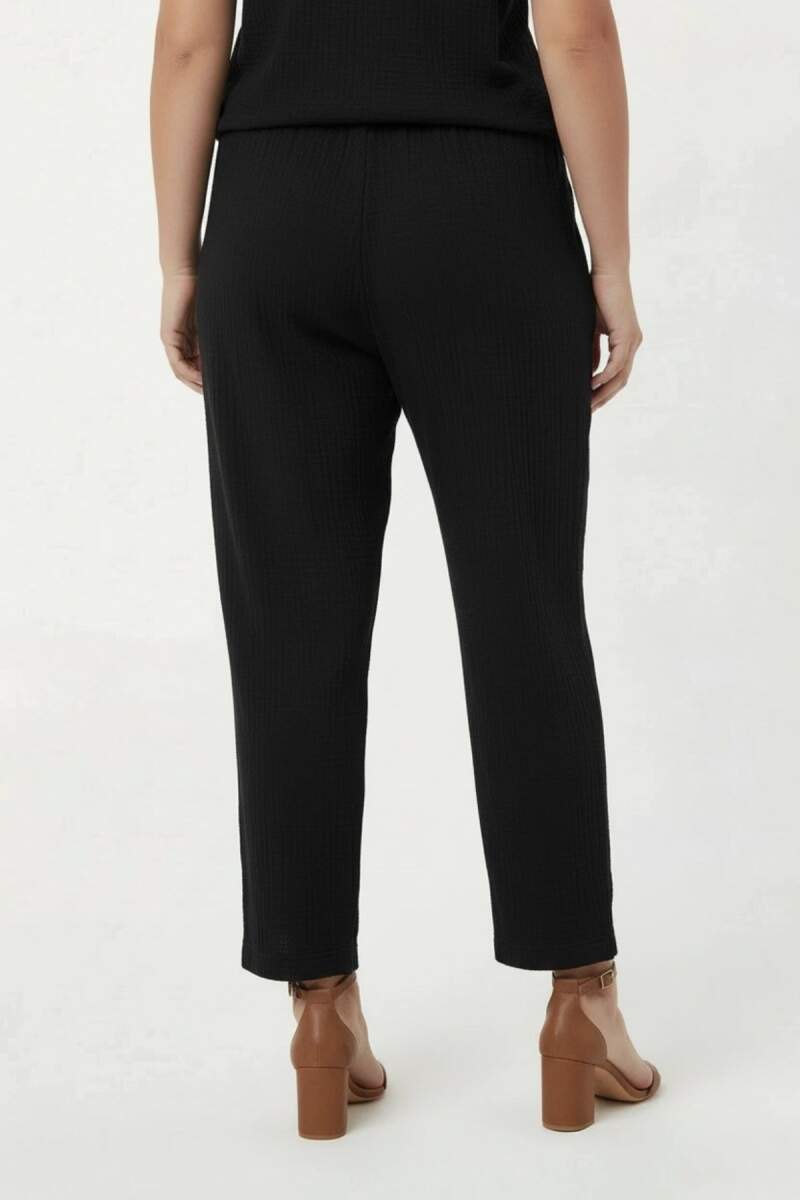 Beli Lastikli Bağcıklı Kadın Büyük Beden Pantolon Siyah