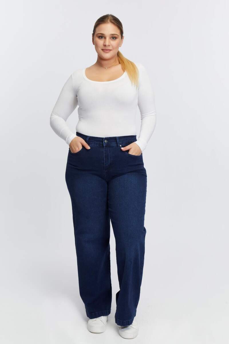 Lacivert beli lastikli bol paça büyük beden kot pantolon, rahatlık ve şıklığı bir arada sunuyor. Geniş paça kesimi ve elastik bel yapısı ile gün boyu konforlu bir kullanım sağlar, her vücut tipine uyum gösterir.