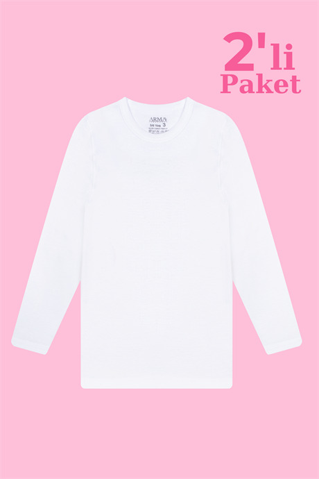 Beyaz 2'li Kız Çocuk Tişört Uzun Kollu %100 Pamuk Ribana