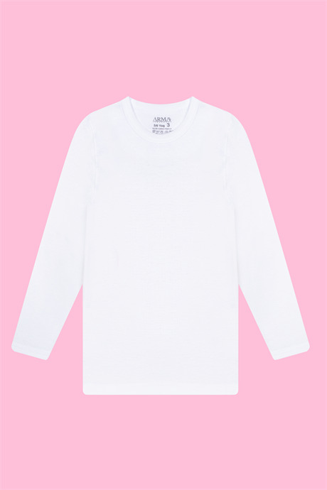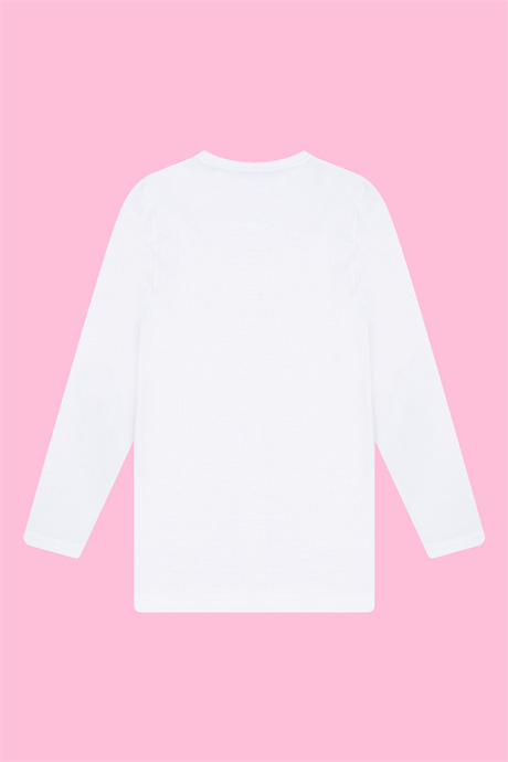 Bu beyaz uzun kollu tişört, kız çocuklar için özel olarak tasarlanmıştır.