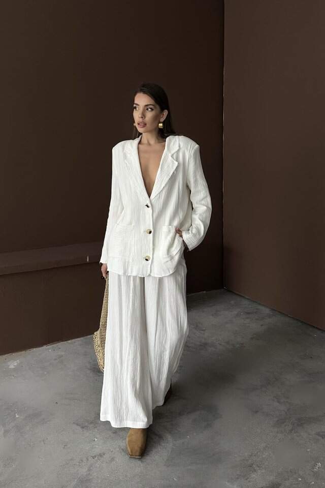 Beyaz Oversize Müslin Takım