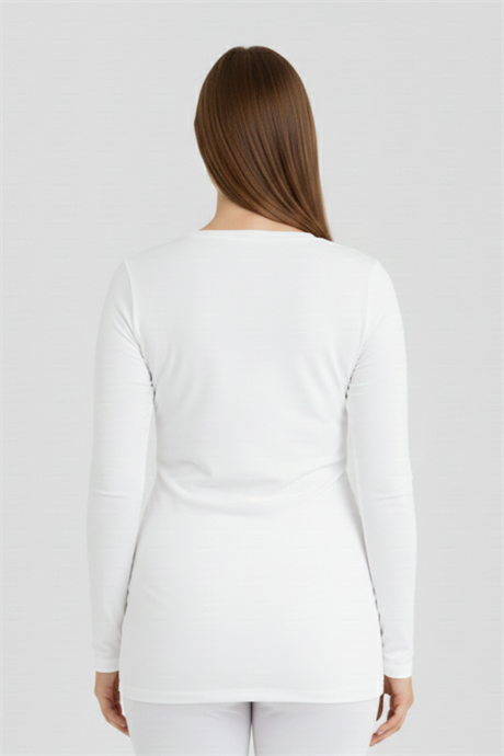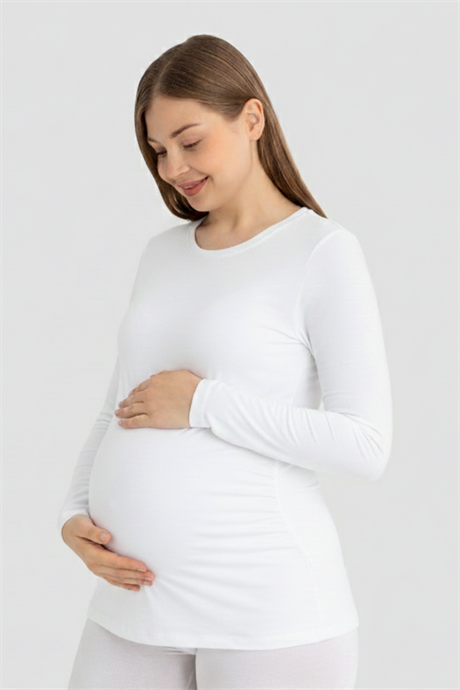 Beyaz Uzun Kollu Hamile Tişört Pamuklu Likralı Yumuşak ve Esnek Kumaş
