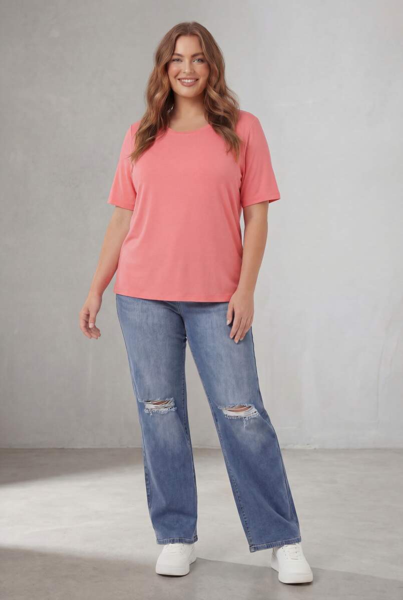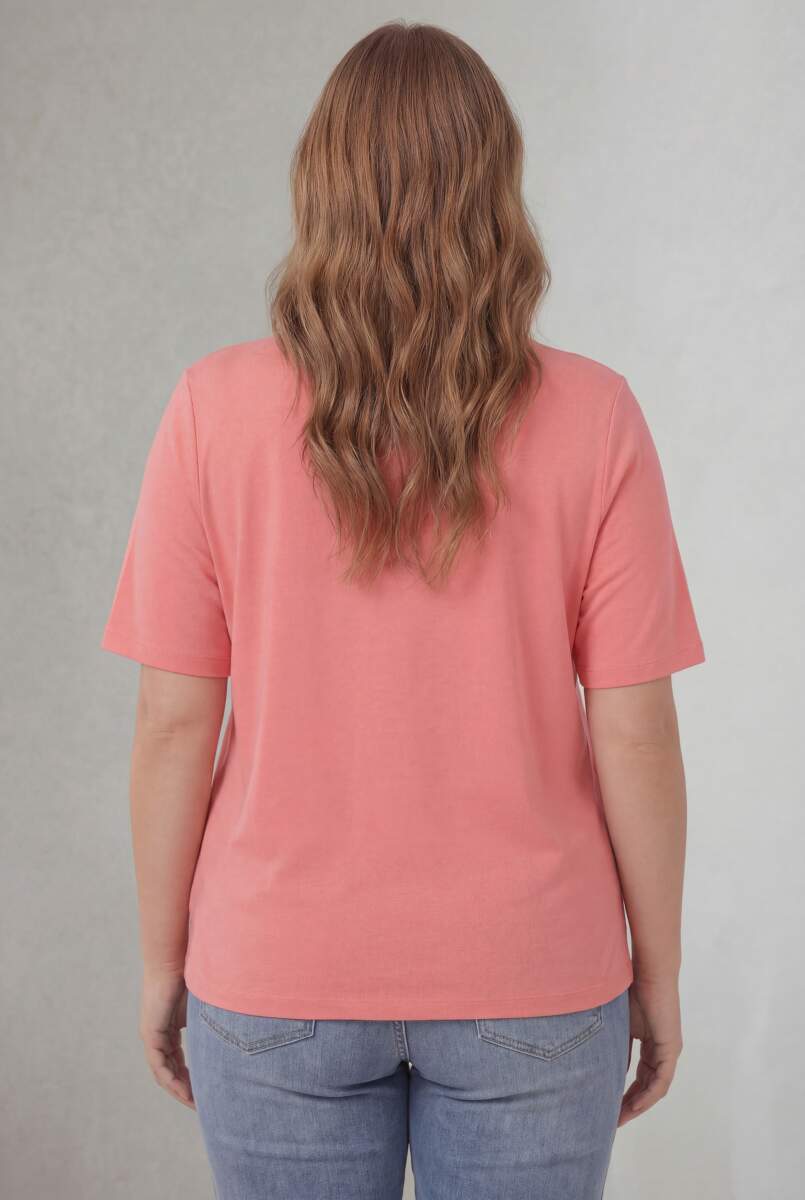 Bisiklet Yaka Büyük Beden Tişört Pembe