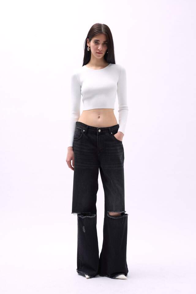 Bisiklet Yaka Dokulu Crop