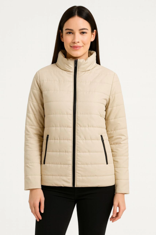 Bomber Mont Ceket – Su İtici Kumaş, Kapitone Astarlı, Fermuarlı, Kışlık - Bej