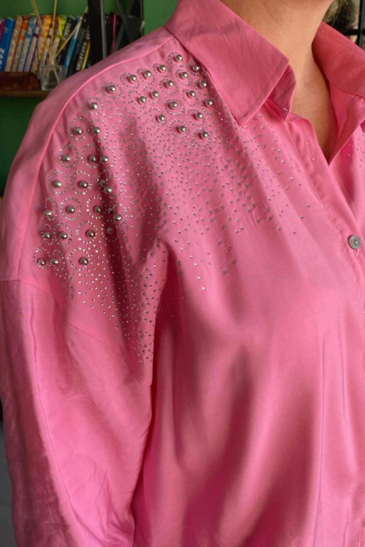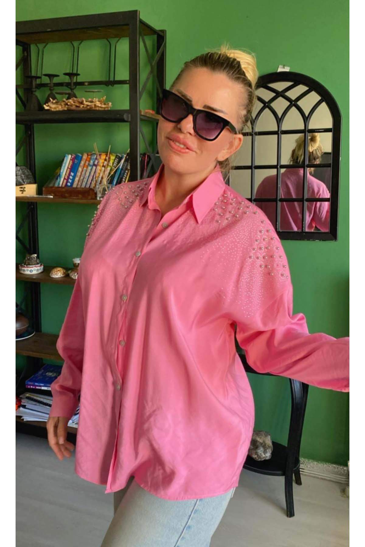 Boncuk İşlemeli Aerobin Gömlek Büyük Beden Pembe