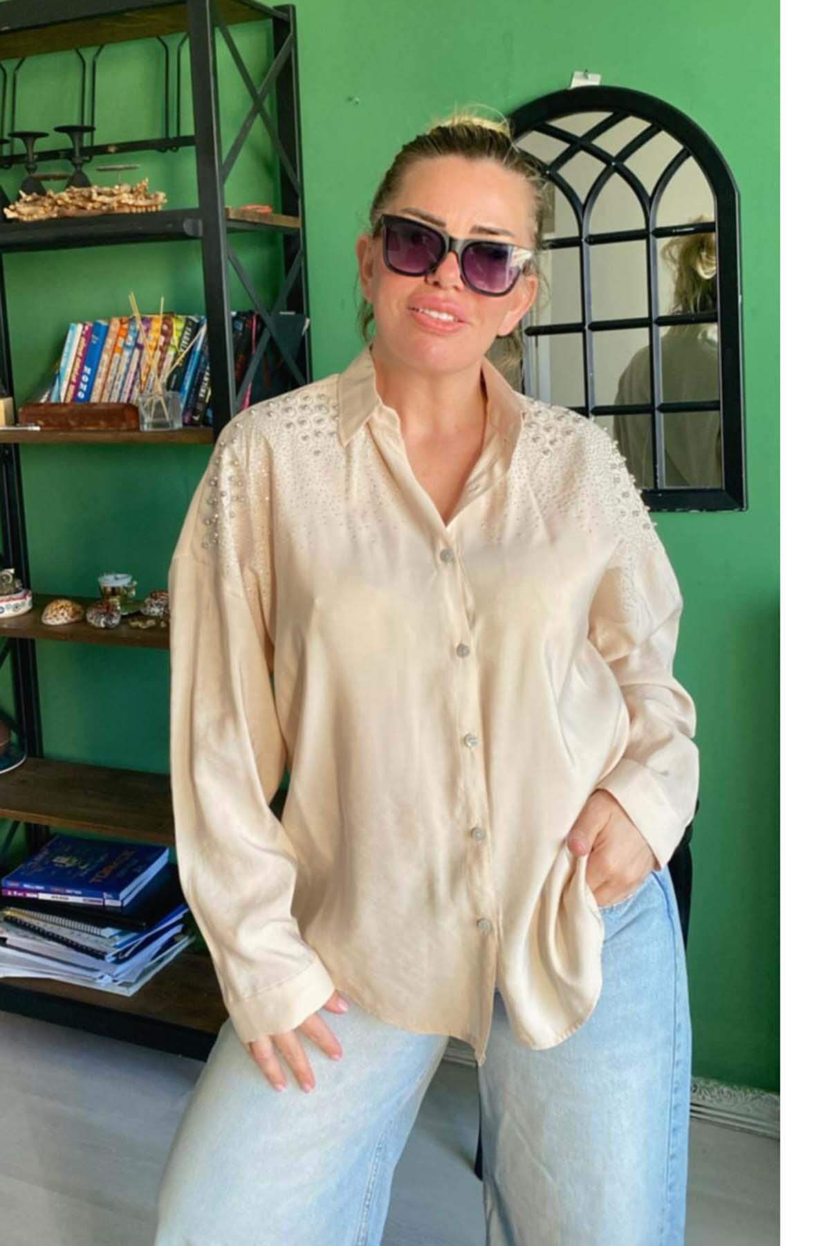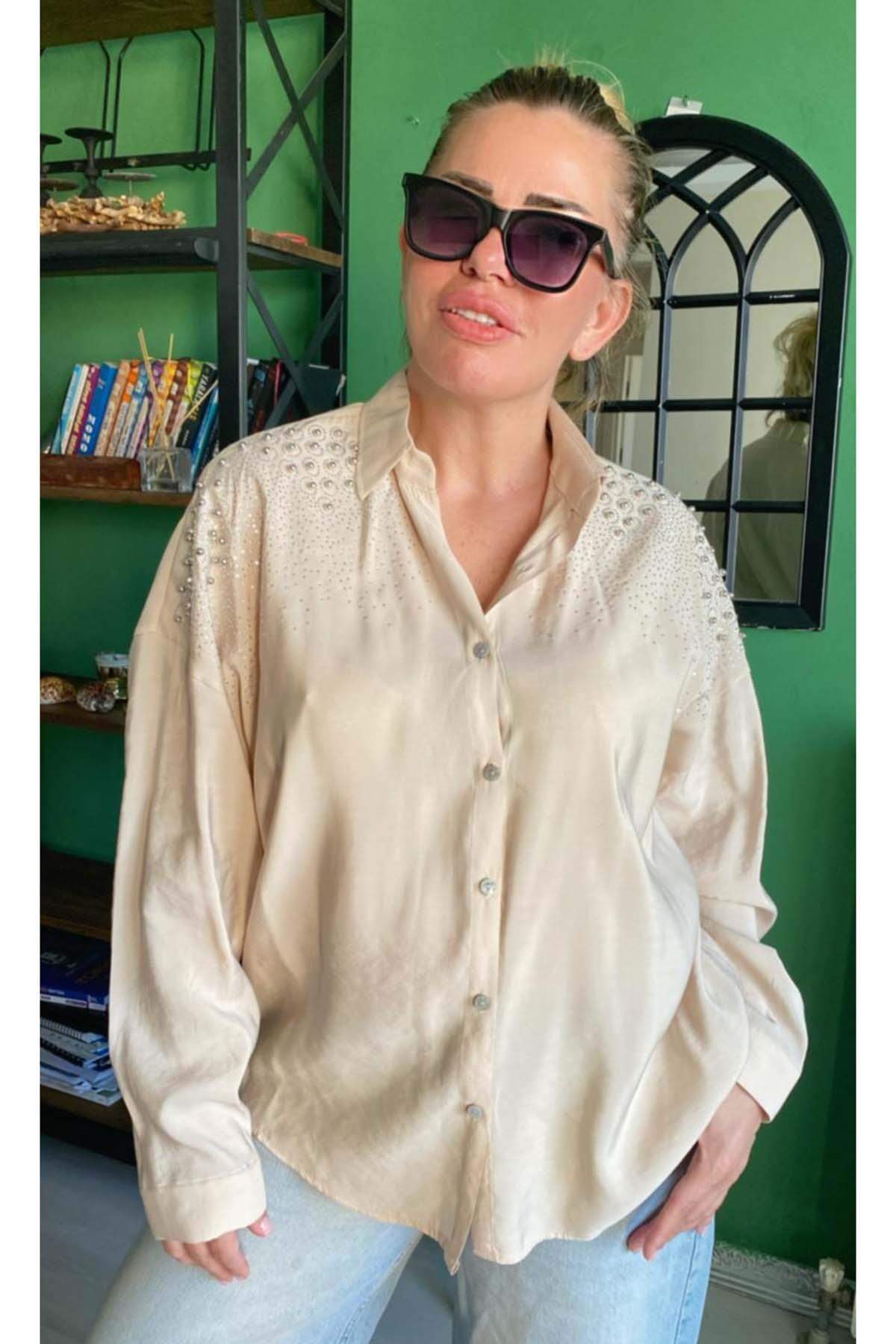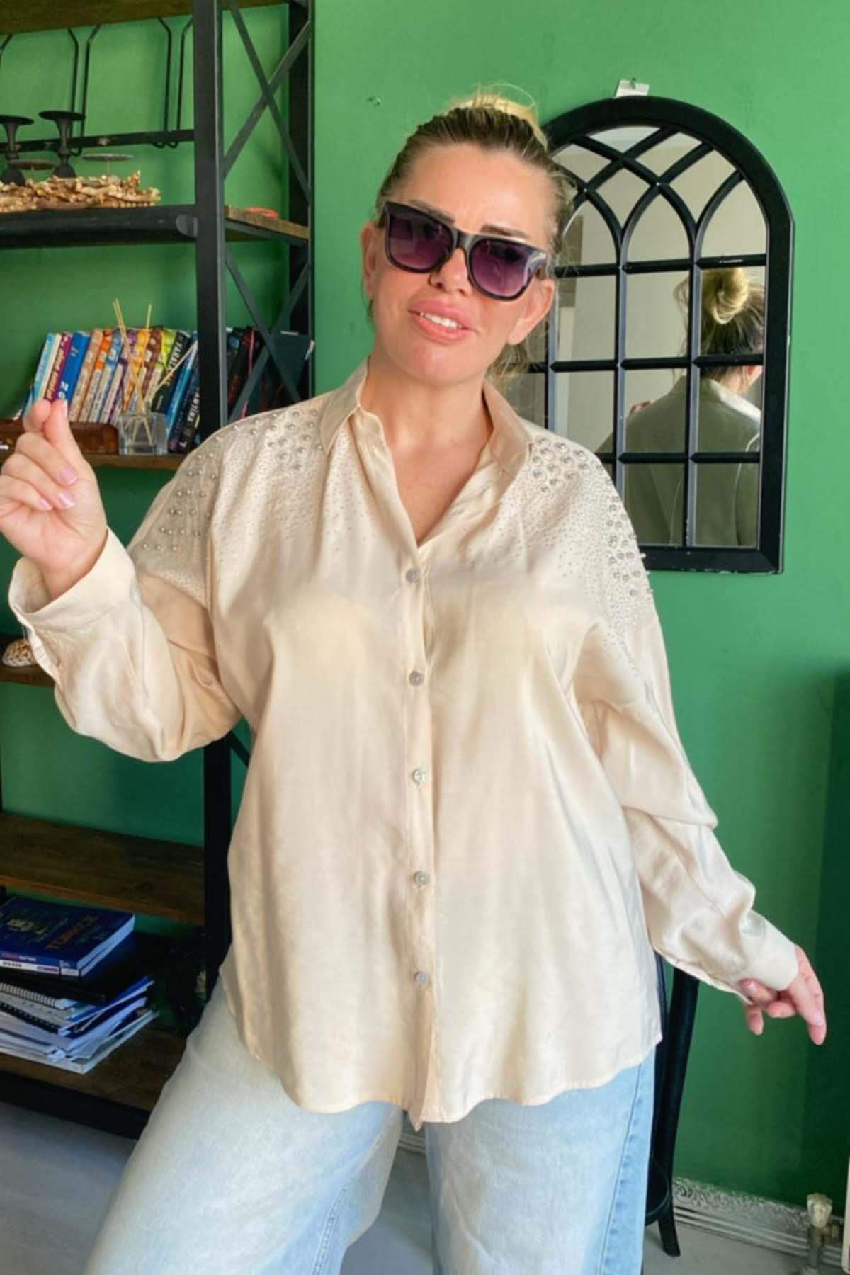 Boncuk İşlemeli Aerobin Gömlek Büyük Beden Taş