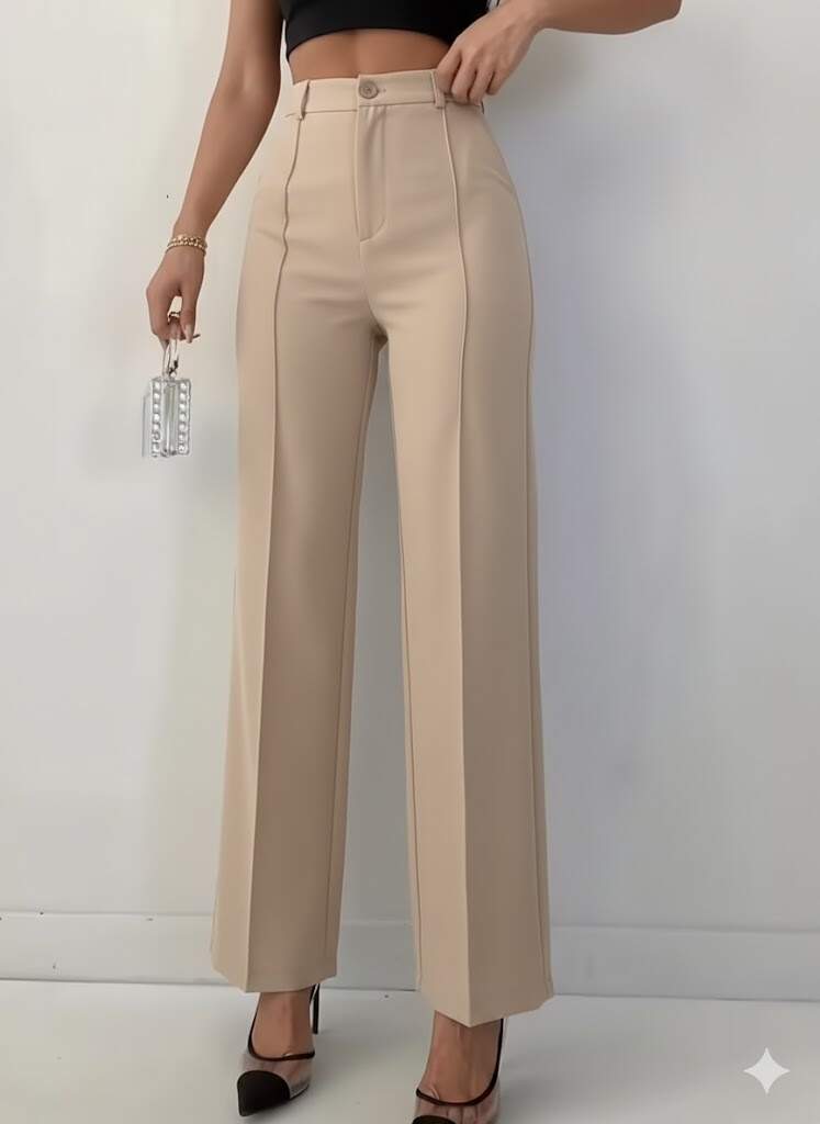 Bordo Renk Yüksek Bel Maskülen Kesim Kumaş Pantolon