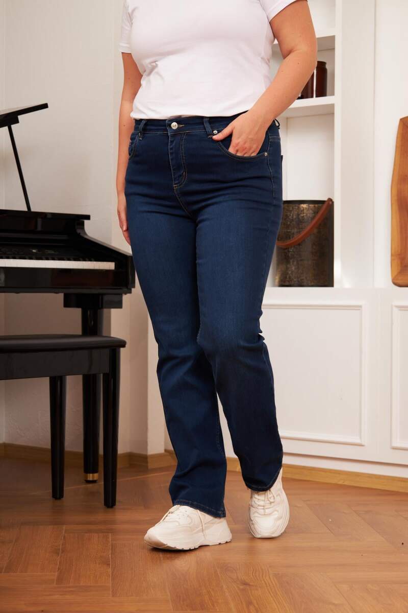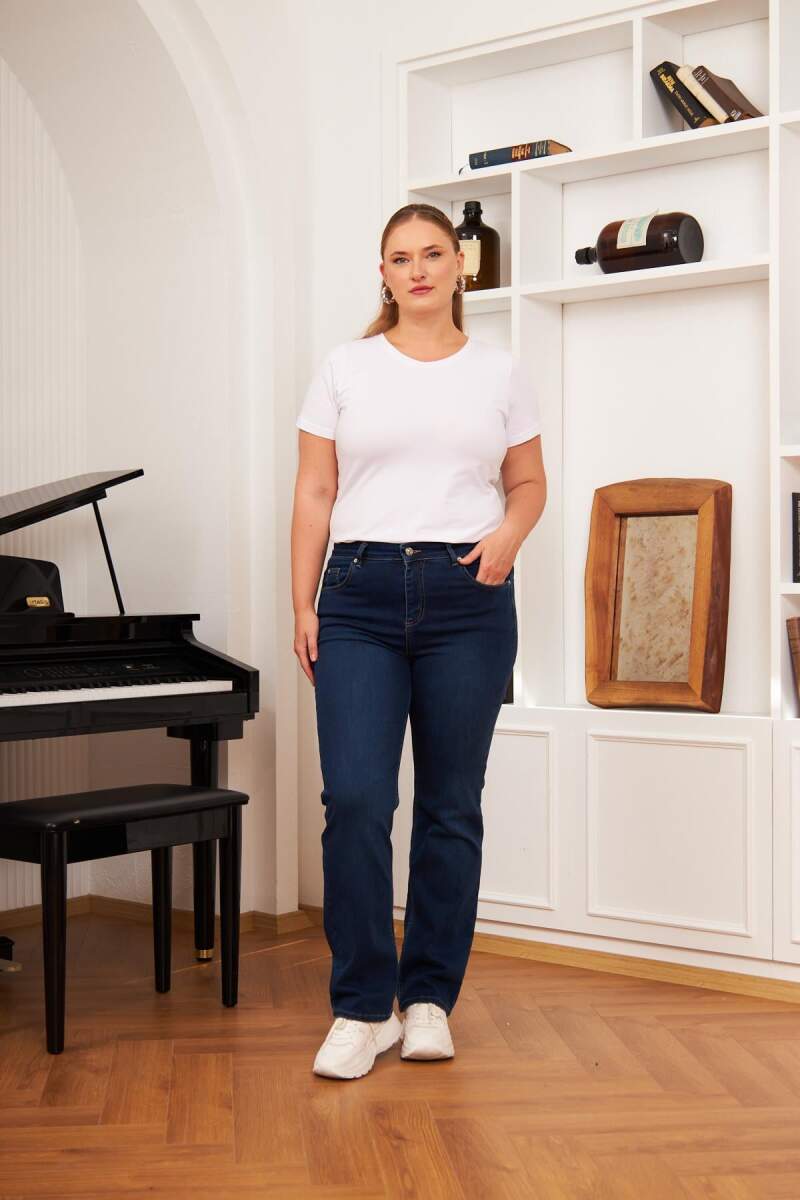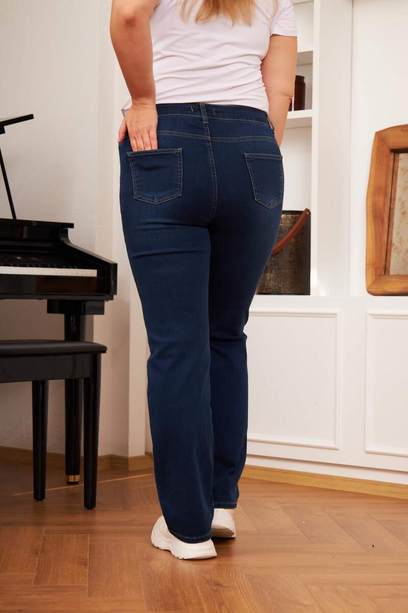 Boru Paça Büyük Beden Koyu Lacivert Kot Pantolon