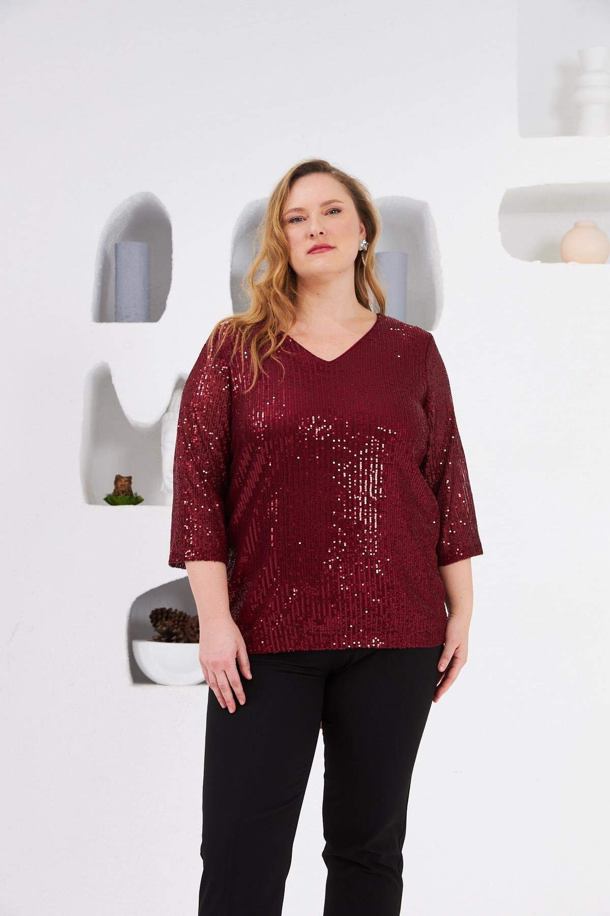 V yaka, Kumaşı Pul Payetli ve İçi astarlıdır