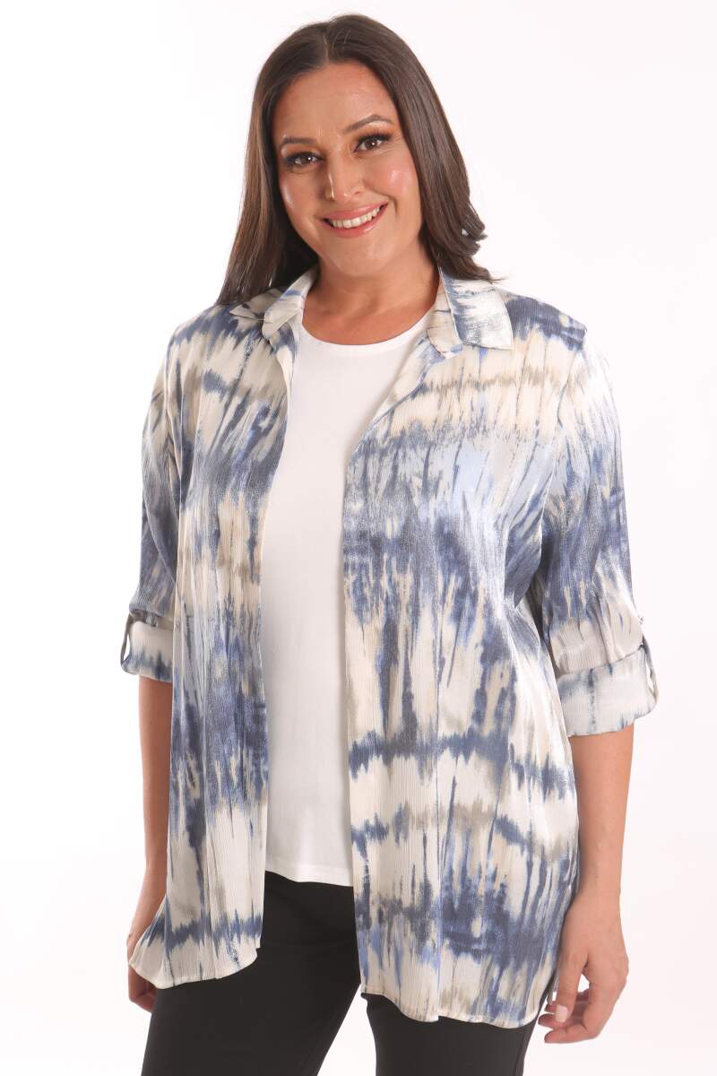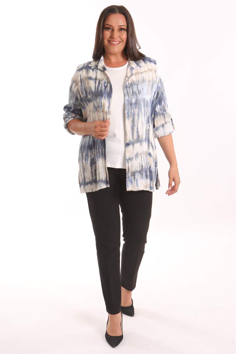 Büyük Beden Batik Desenli Simli Gömlek Bluz Lacivert Takım , klasik kesimi kruvaze yaka detayı ve dokusu ile maskülen tavrı vurgulamanıza yardımcı oluyor. Ceket modelinin kol apolet ve düğme detayları çarpıcı bir görünüm yaratıyor.