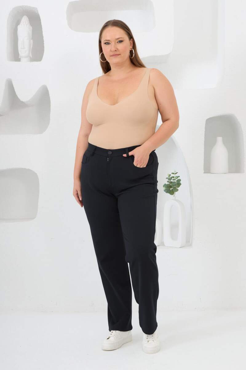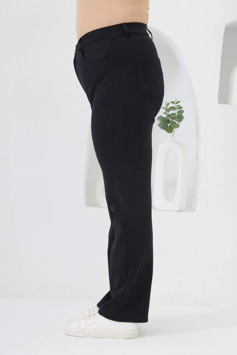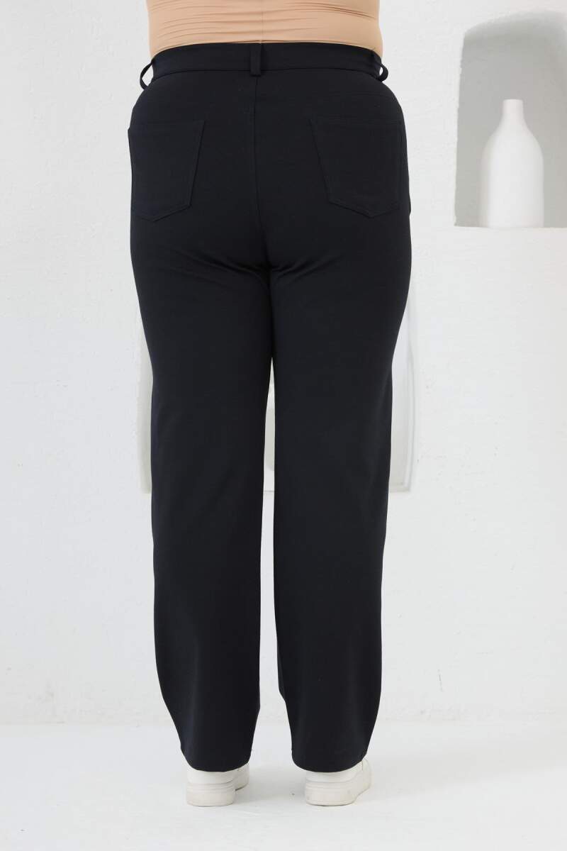 Büyük beden boru paça çelik örme pantolon, şıklığı ve rahatlığı bir arada sunan lacivert rengiyle gardırobunuzda vazgeçilmez bir parça olacak. Esnek yapısı ve modern tasarımı ile gün boyu konfor sağlayarak stilinize zarif bir dokunuş katar.