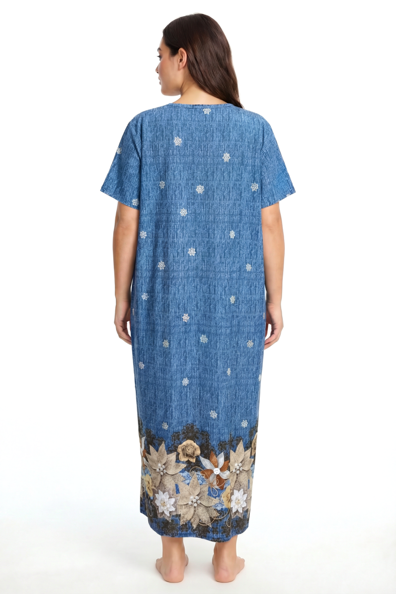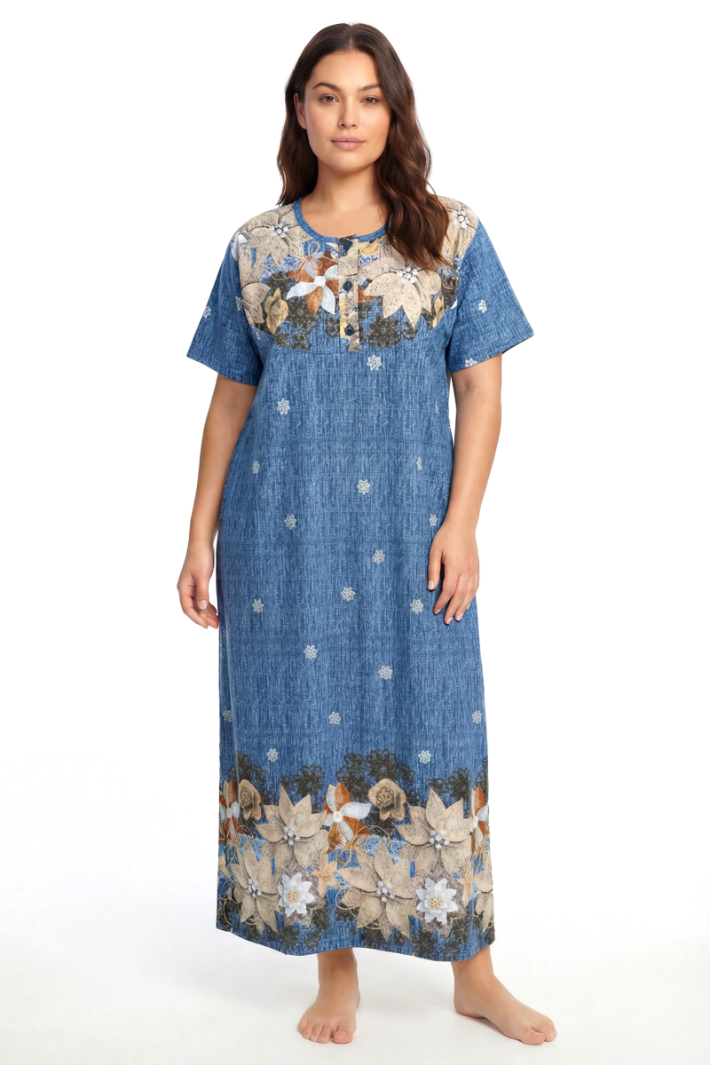 Yumuşak dokusu ve ferah kesimiyle öne çıkan bu anne geceliği, sıcak günlerde ve yıl boyu ev kullanımında maksimum rahatlık sunar. Zarif çiçek desenleriyle klasik ve şık bir görünüm kazanan model, büyük beden kalıbı sayesinde vücudu sıkmadan konforlu bir deneyim sağlar.