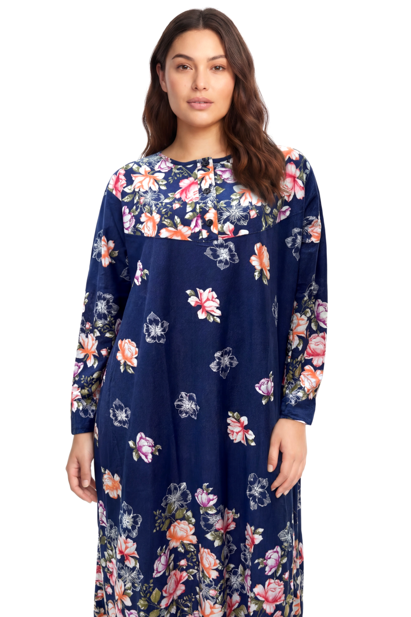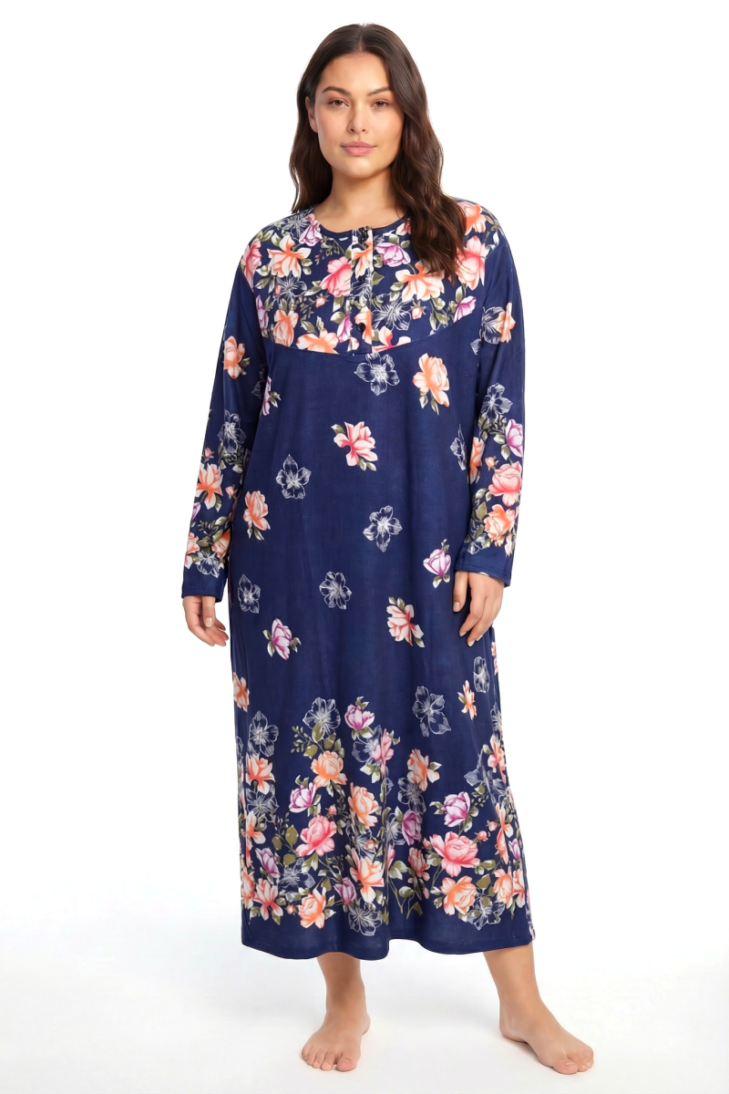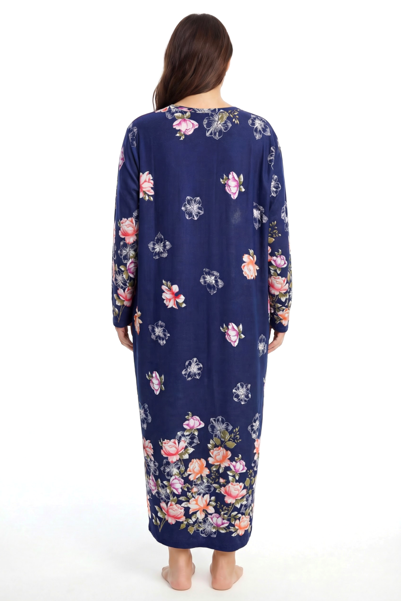 Zarif çiçek desenleri ve rahat kalıbıyla öne çıkan bu anne geceliği, evde ve uyku saatlerinde maksimum konfor sunmak için tasarlandı. Uzun boyu ve dökümlü yapısı sayesinde vücudu sıkmadan sarar, gün boyu rahat bir kullanım sağlar. Hem şık görünmek hem de özgürce hareket etmek isteyenler için ideal bir tercihtir.