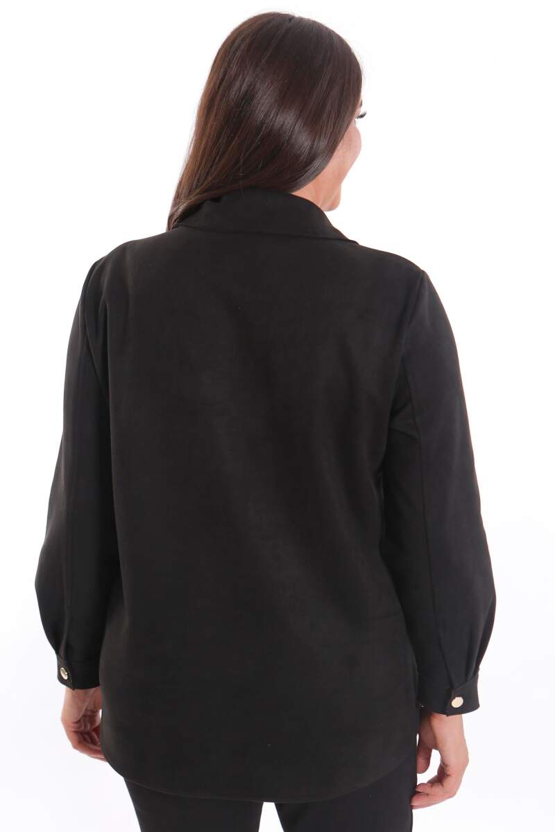 Süet malzemeden üretilen, yumuşak dokusu ile dikkat çeken süet ceket, rahatlığı ile günlük yaşamın ayrılmaz parçası.Süs çıt çıt detayı ve lazer kesimi ile şık bir tasarım.Pantolon ve eteklerinizle rahatlıkla kombinleye bileceğiniz çıtçıt detaylı siyah süet gömlek.