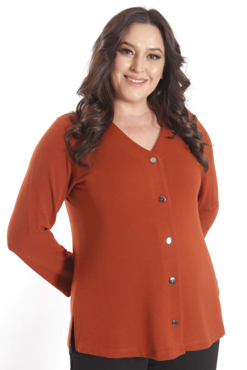 Büyük Beden Çıt Çıt Düğmeli Kiremit Hırka, tasarımda kullandığı yumuşak doku ile uzun süreli kullanımda konfor sunuyor. Kıyafetlerinizi ve şıklığınızı olumsuz hava şartlarında korurken aynı zamanda tamamlayan özel parçalardan birisi olan hırka modeli sahip olduğu rahat kalıbı ile şık bir görünüm sunuyor.
