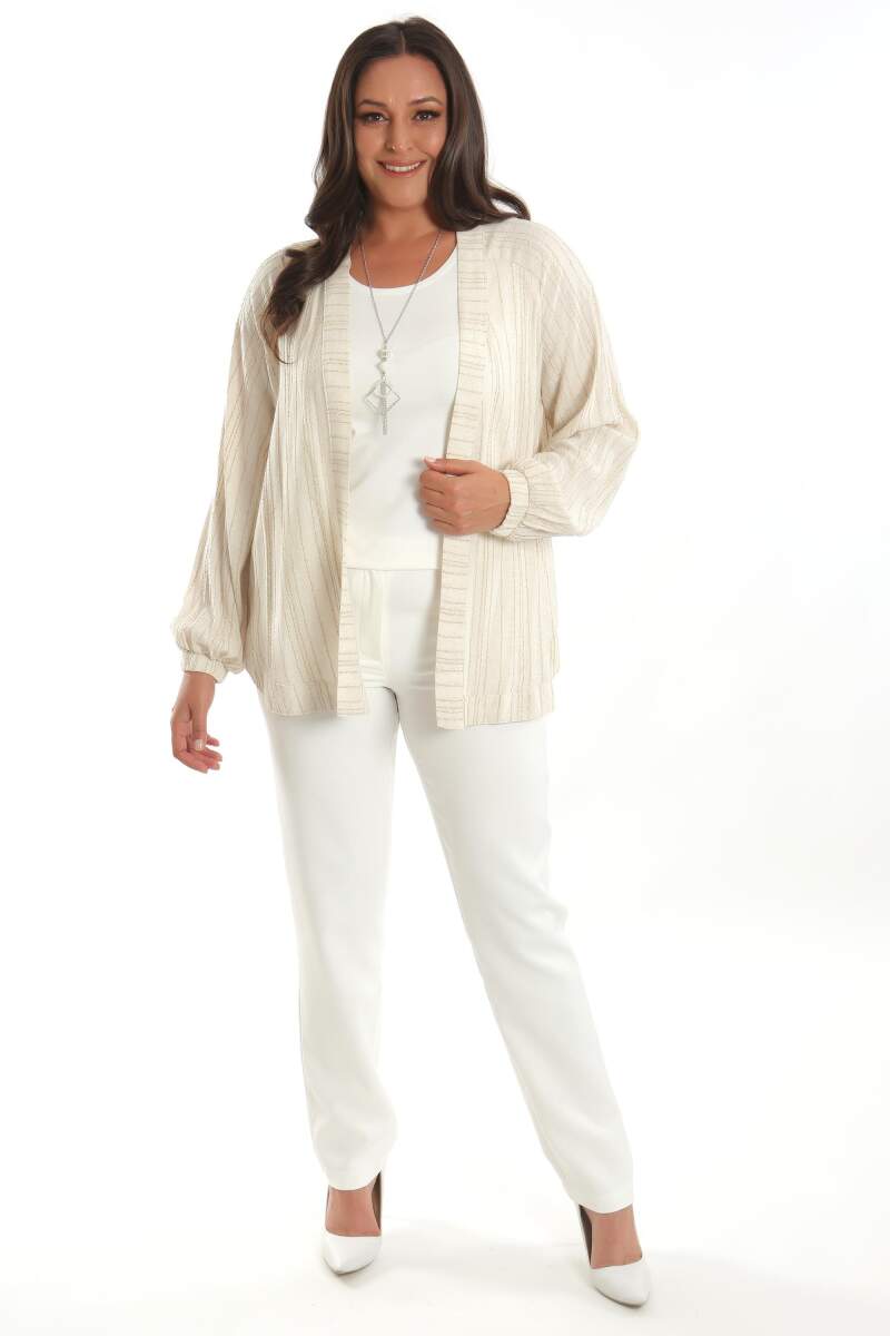 Angelino Büyük Beden Çizgili Oversize Bej Ceket, klasik kesimi yuvarlak yaka detayı ve dokusu ile maskülen tavrı vurgulamanıza yardımcı oluyor. Ceket modelinin ön taş detayı çarpıcı bir görünüm yaratıyor.