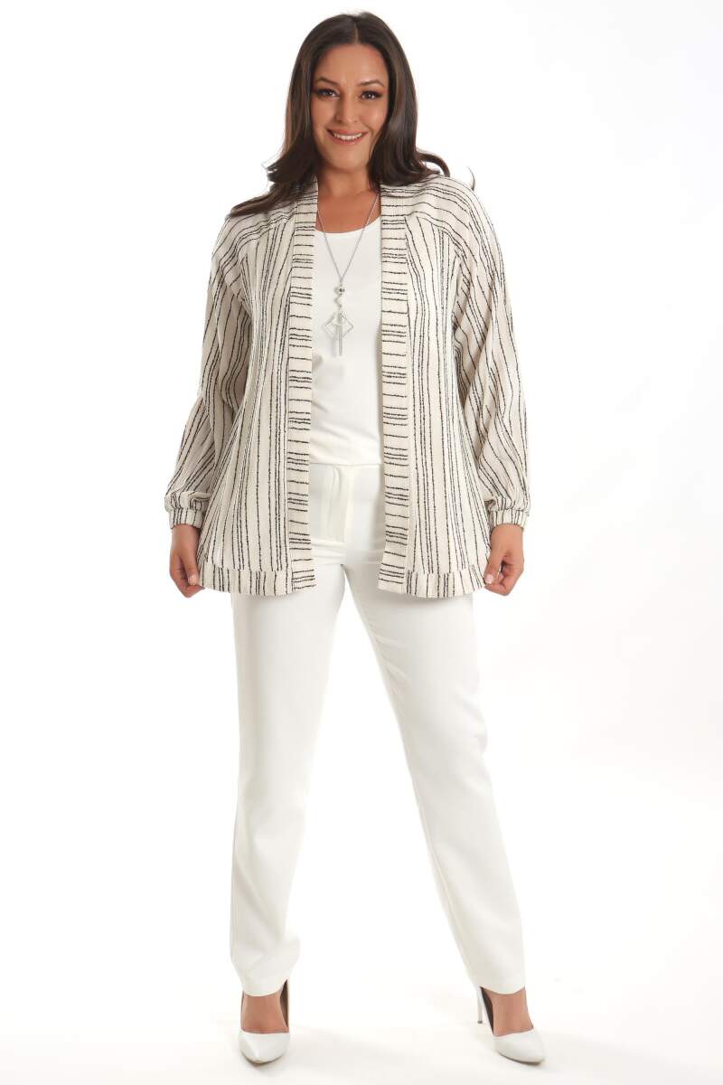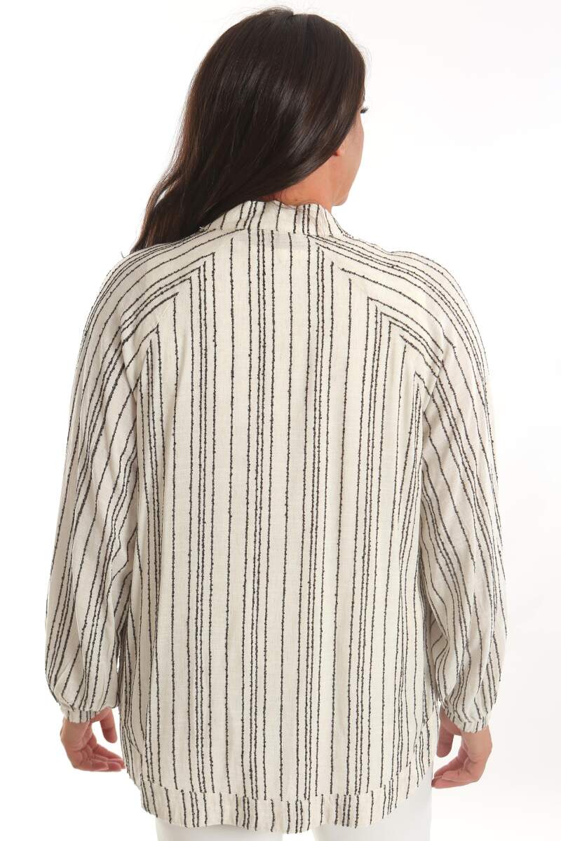 Angelino Büyük Beden Çizgili Oversize Kahverengi Ceket, klasik kesimi yuvarlak yaka detayı ve dokusu ile maskülen tavrı vurgulamanıza yardımcı oluyor. Ceket modelinin ön taş detayı çarpıcı bir görünüm yaratıyor.