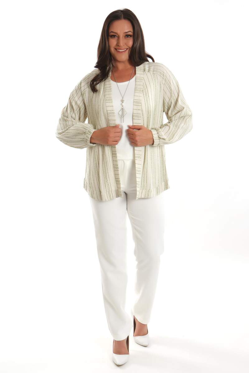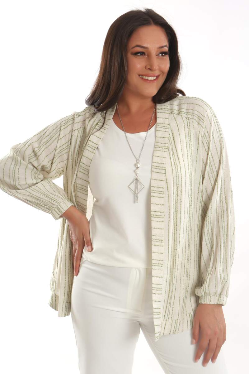 Angelino Büyük Beden Çizgili Oversize Yeşil Ceket, klasik kesimi yuvarlak yaka detayı ve dokusu ile maskülen tavrı vurgulamanıza yardımcı oluyor. Ceket modelinin ön taş detayı çarpıcı bir görünüm yaratıyor.