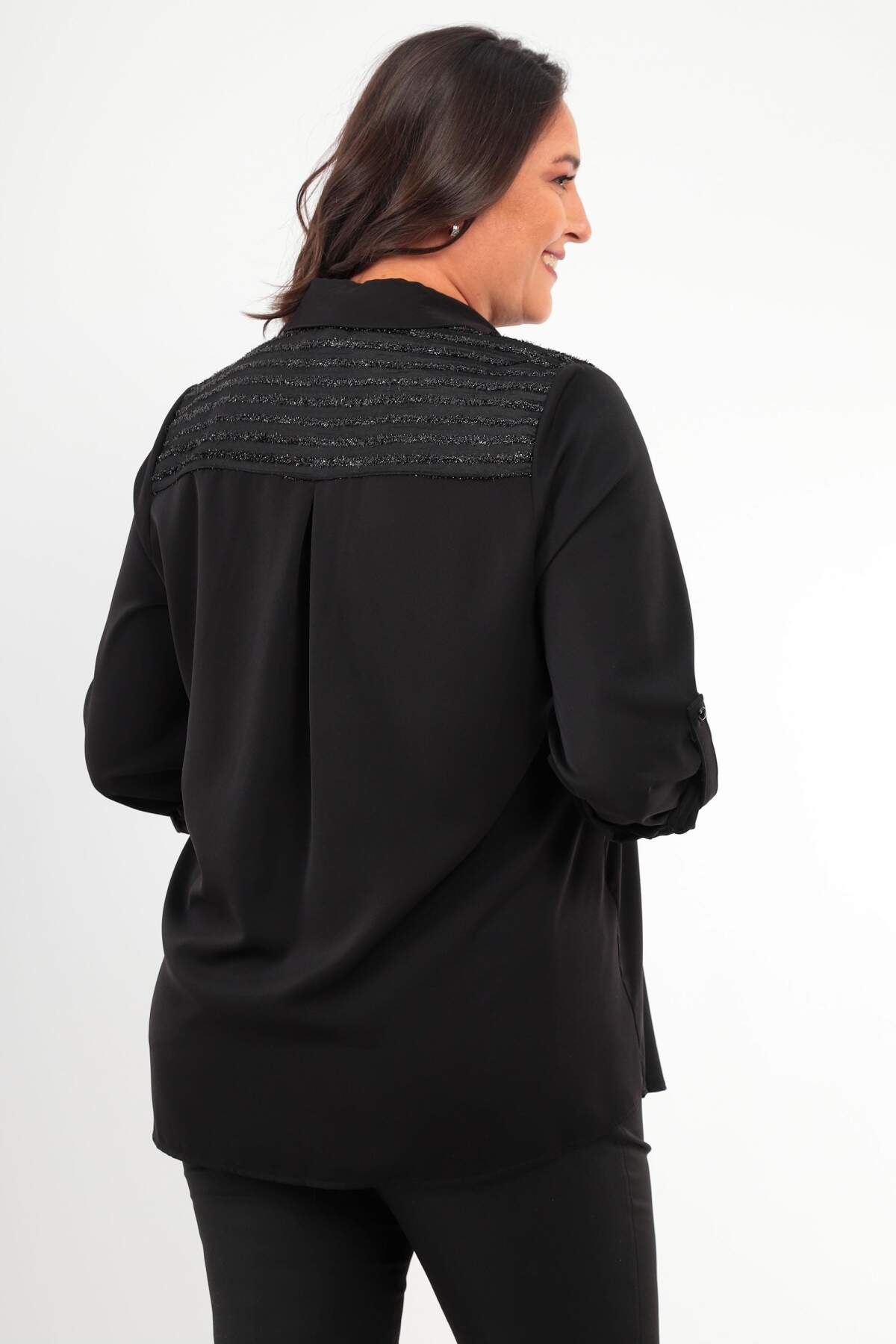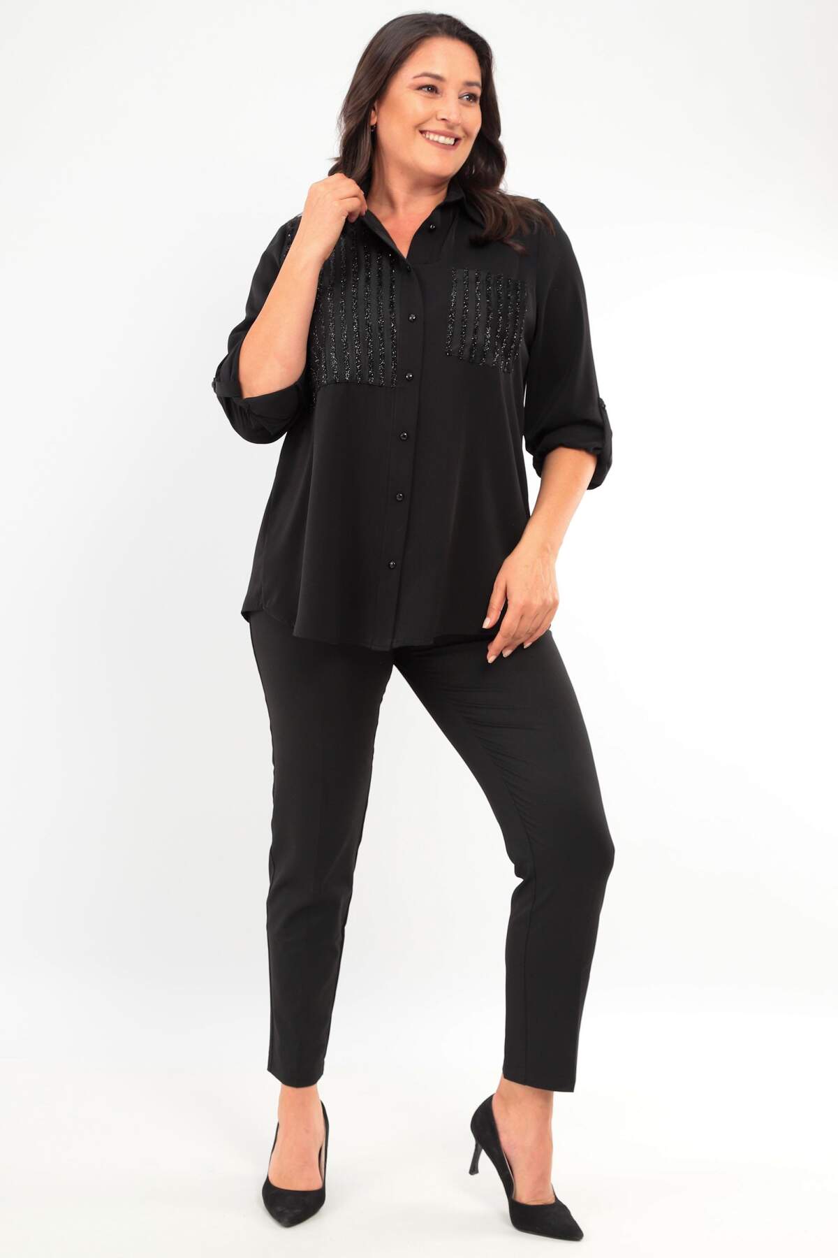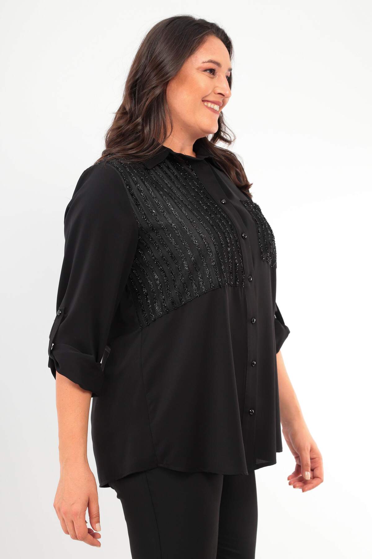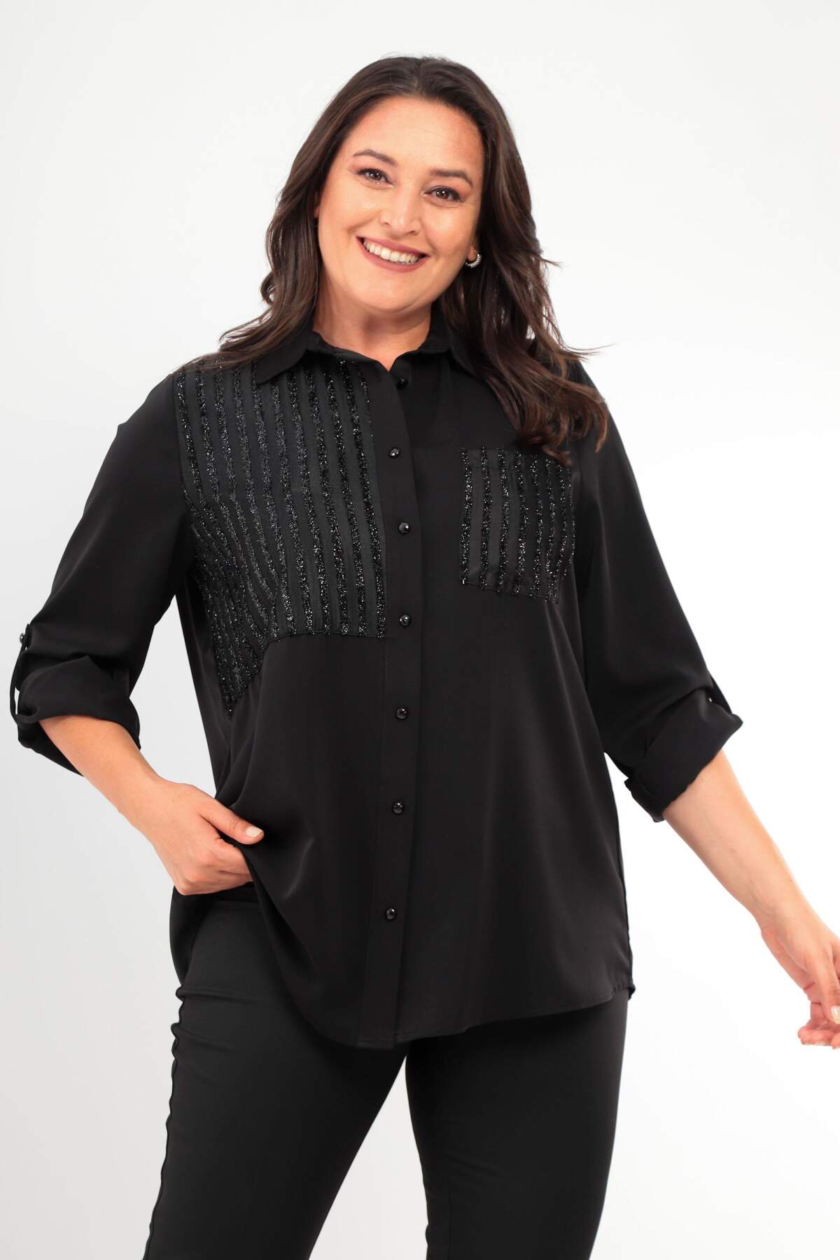 Angelino Büyük Beden Çizgili Simli Cepli Siyah Gömlek, yaz aylarının bitmeyen enerjisini çizgili gömlek ile yakala! Hoş dokusu ile seni büyüleyecek olan bu parçayı kumaş pantolonlar ile birleştirmek isteyebilirsin. Hafif dokusu ile rahatlığı hissederken en yoğun günlerin bile enerjik geçecek! :)