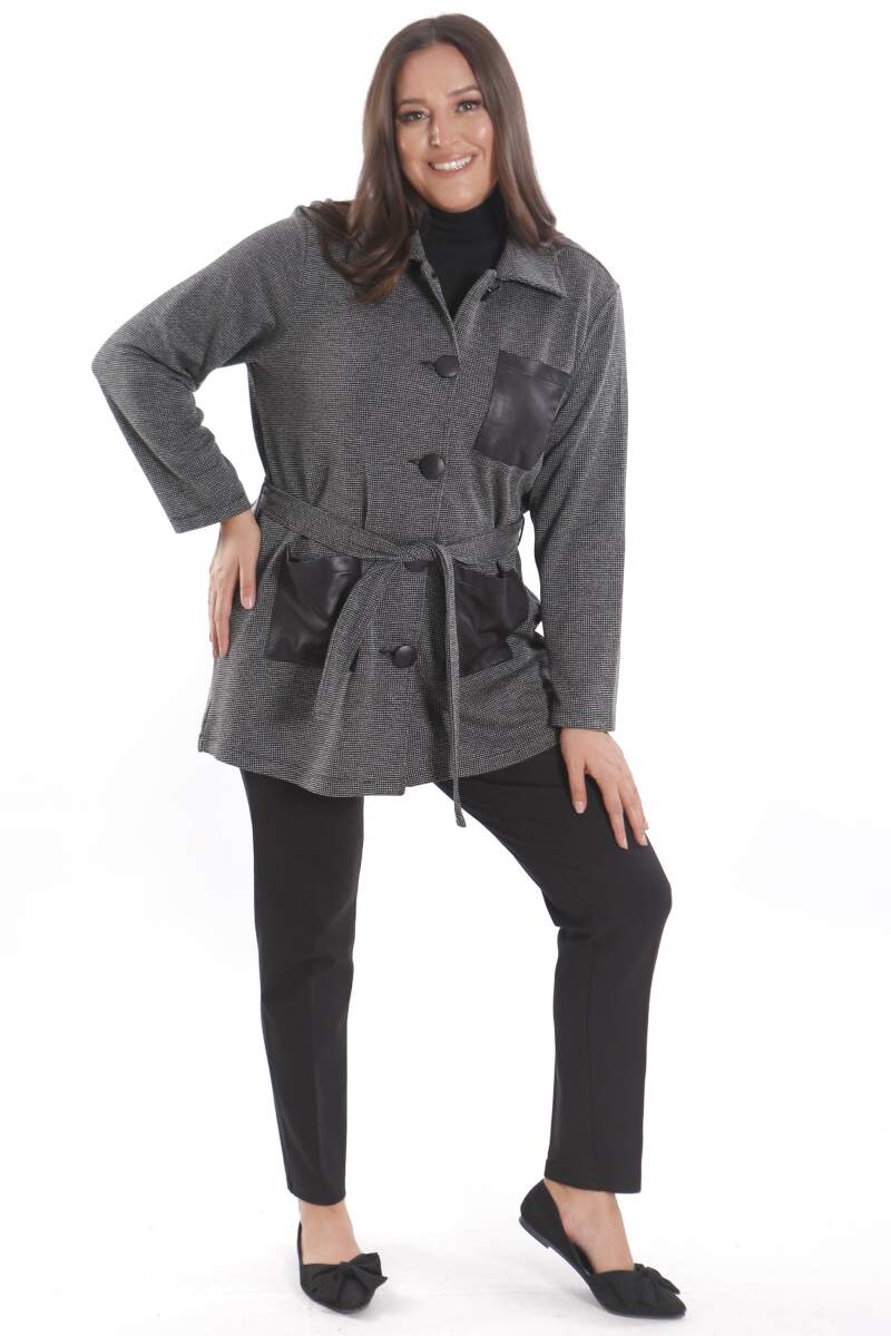 Süet malzemeden üretilen, yumuşak dokusu ile dikkat çeken süet ceket, rahatlığı ile günlük yaşamın ayrılmaz parçası.Kuş gözü cep detayı ile şık bir tasarım.Bluz,gömlek,pantolon ve eteklerinizle rahatlıkla kombinleye bileceğiniz düğme detaylı siyah ceket.