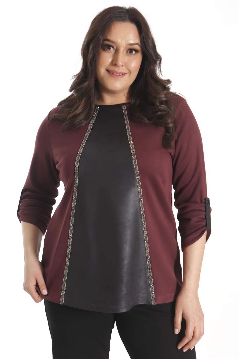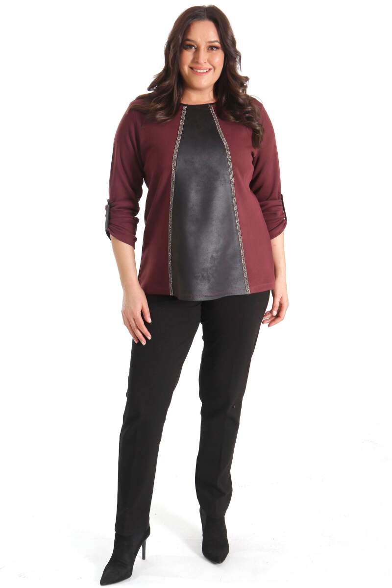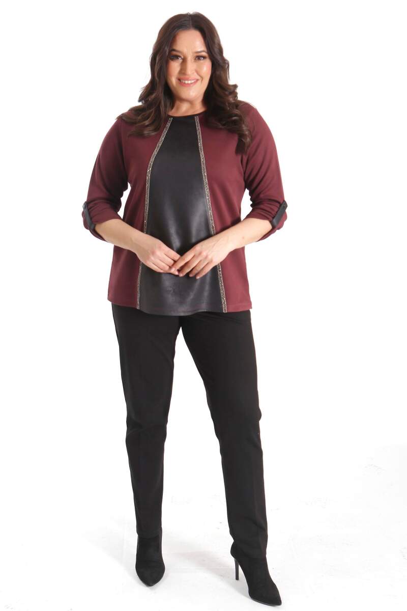 Üzerinde özenle oluşturulmuş deri detayları ile zarif görünümünü sergileyecektir Tarzınızı desteklemeye yardımcı olan ürün farklı stili ile her ortamda dikkat çekmeyi başarıyor. Hem günlük hem de özel anlarınızda gözalıcı stili ile her ortamda dikkat çekmenizi sağlayacak.Etek ve pantolonlarınızla rahatca kombinleye bileceğiniz estetik ve göz kamaştırıcı taş detaylı uzun kol bluz.