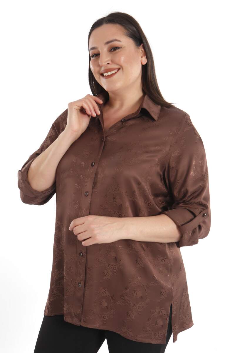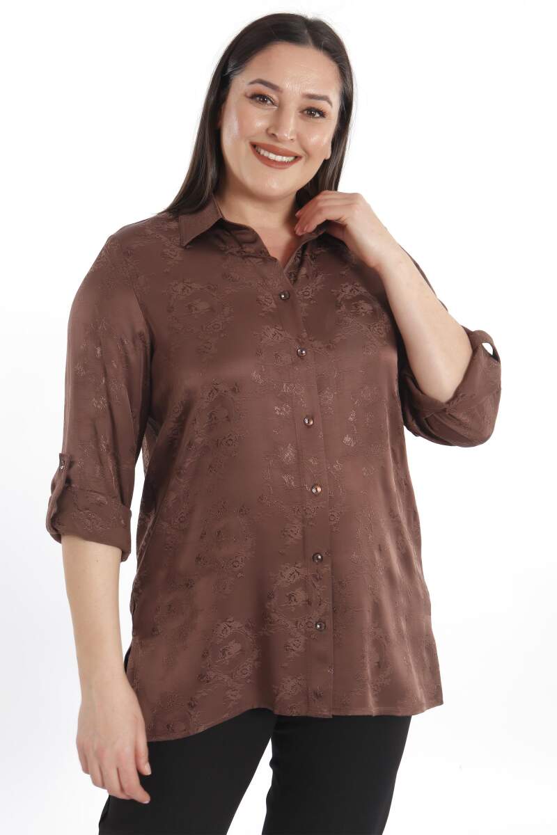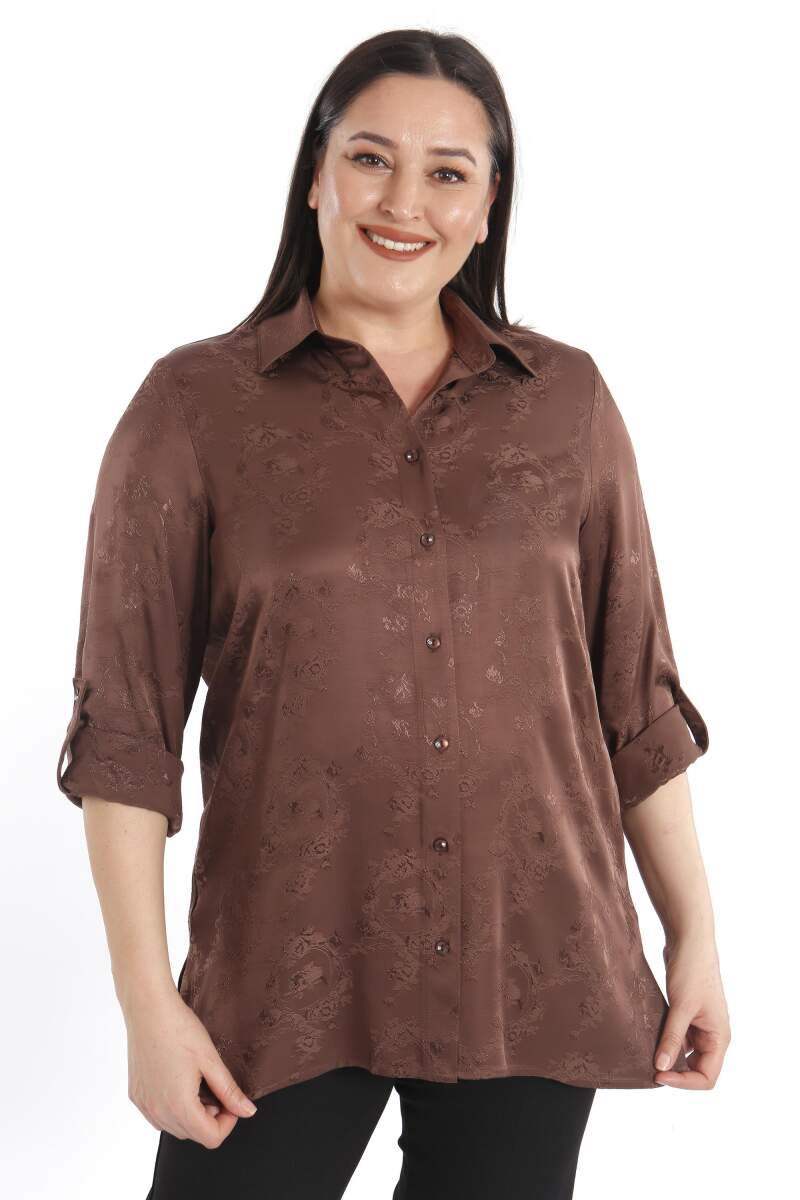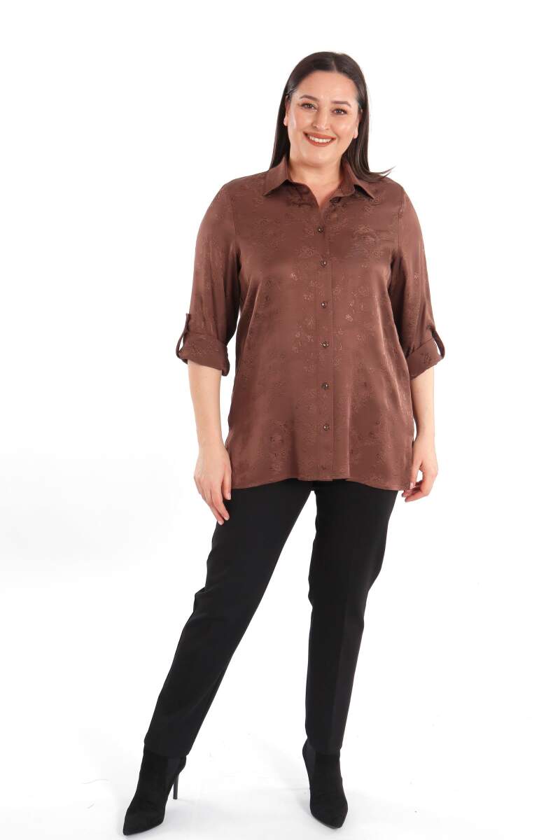Angelino Büyük Beden Desenli Floş Viskoz Kahverengi Gömlek, sonbahar ve kış aylarının bitmeyen enerjisini desenli gömleğimiz ile yakalayın! Hoş dokusu ve cıvıl cıvıl renkleri ile seni büyüleyecek olan bu parçayı kumaş pantolonlar ile birleştirmek isteyebilirsin. Hafif dokusu ile rahatlığı hissederken en yoğun günlerin bile enerjik geçecek! :)