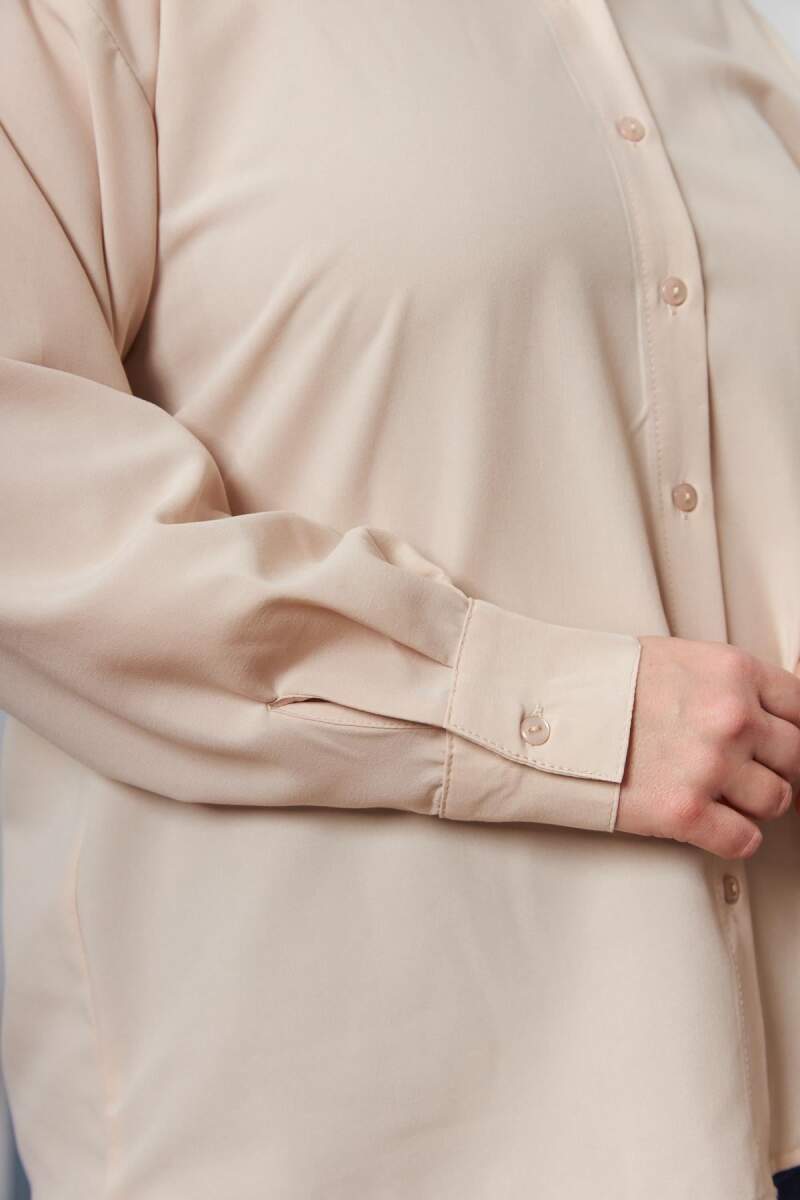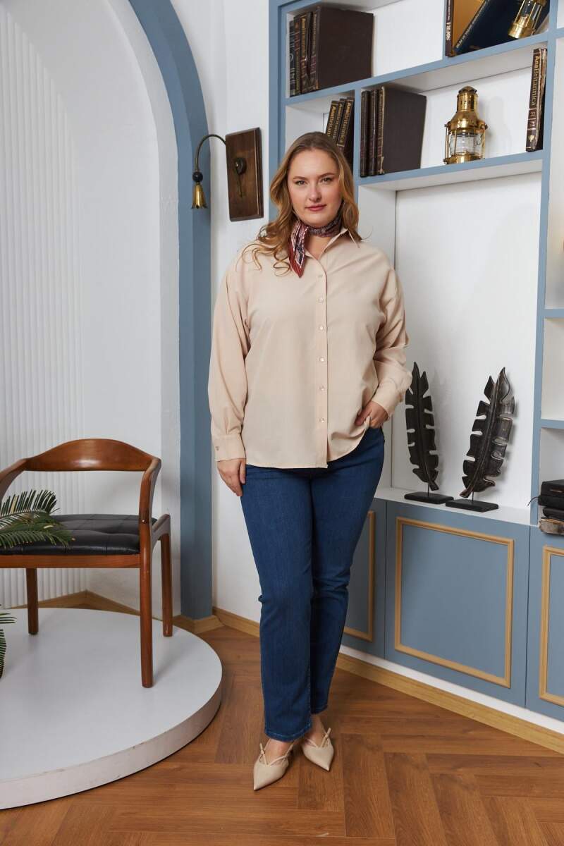 Bol Dökümlü Sırt Detaylı Büyük Beden Krem Gömlek