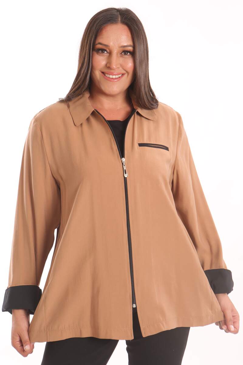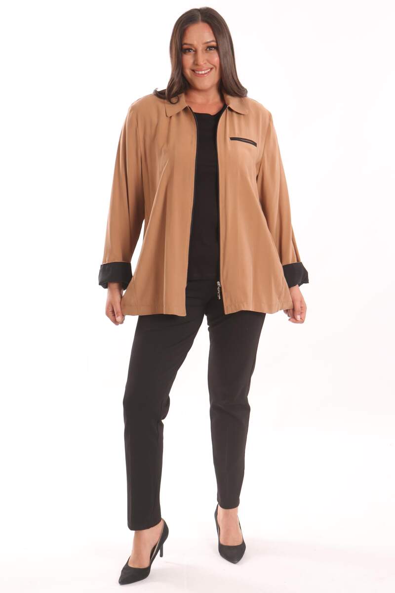 Büyük Beden Fermuarlı Büyük Beden Camel Trençkot , klasik kesimi kapüşon detayı ve dokusu ile maskülen tavrı vurgulamanıza yardımcı oluyor. Trençkot modelinin cep ve lastik detayları çarpıcı bir görünüm yaratıyor.