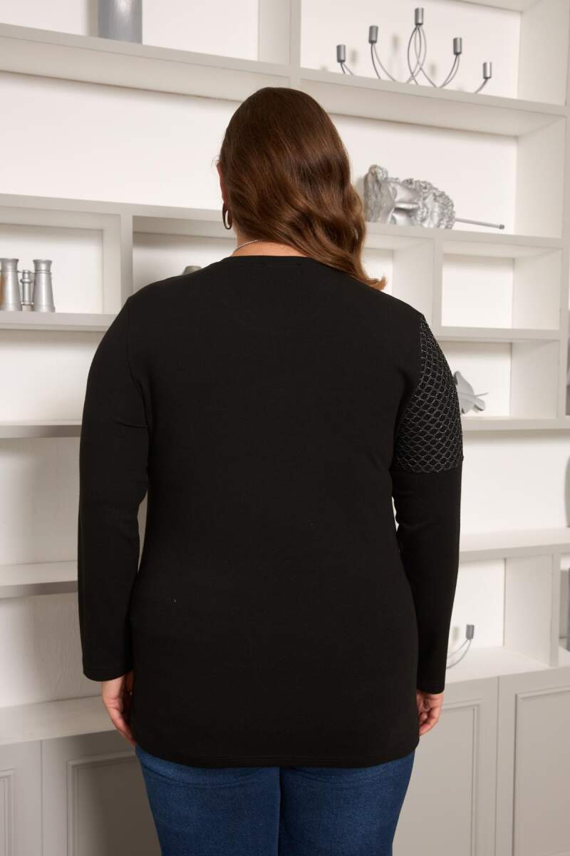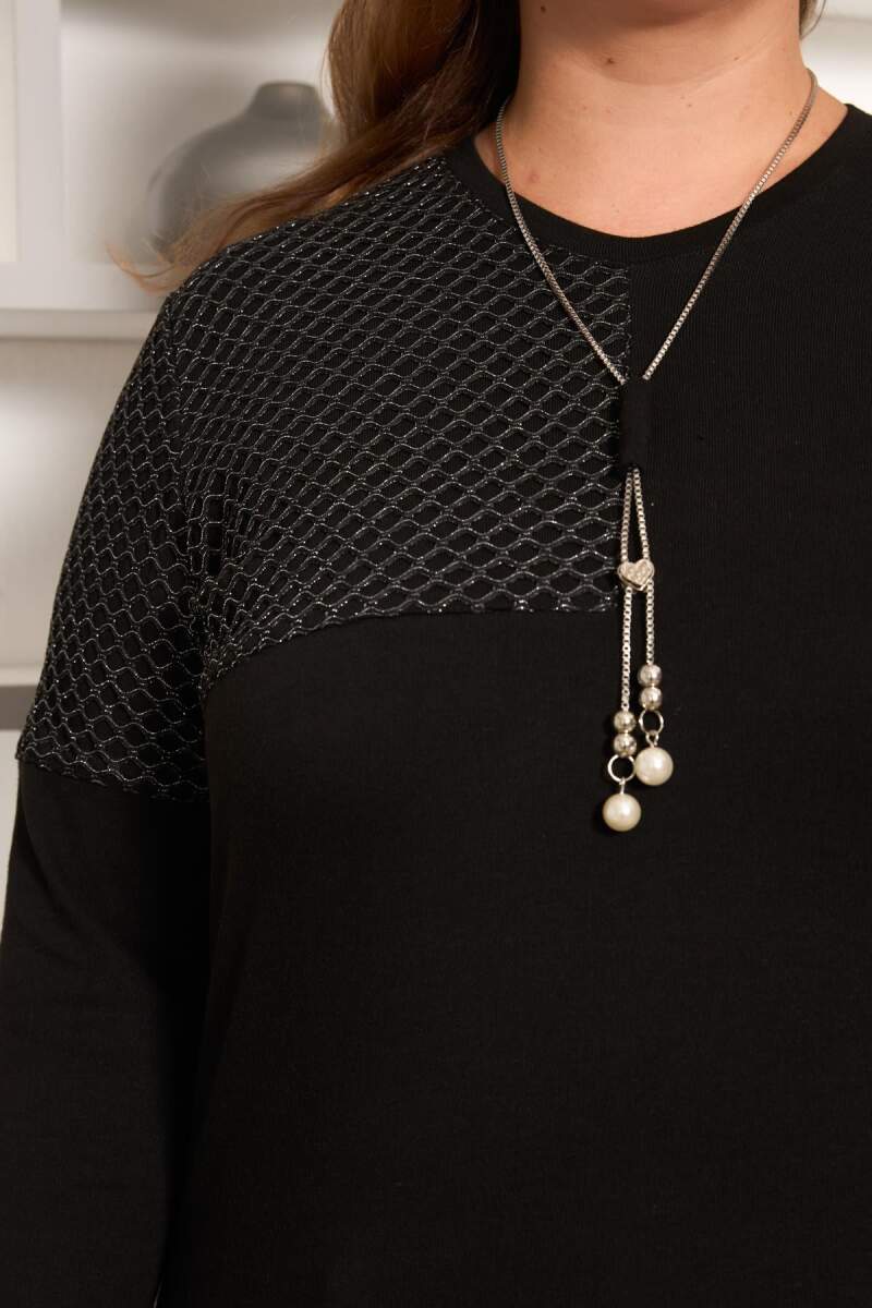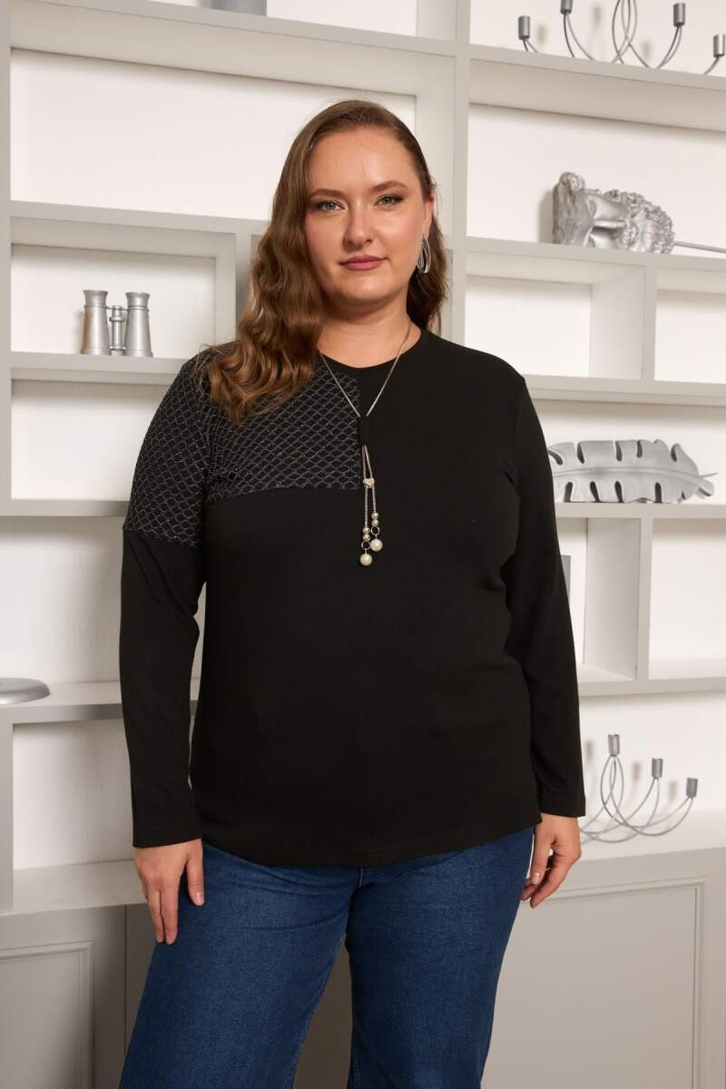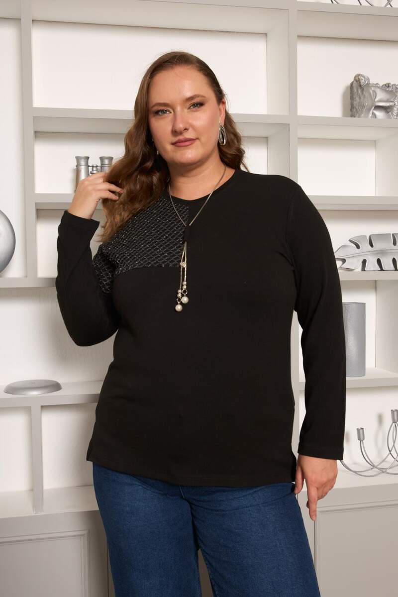 Büyük Beden File ve Kolye Detay Bluz Siyah