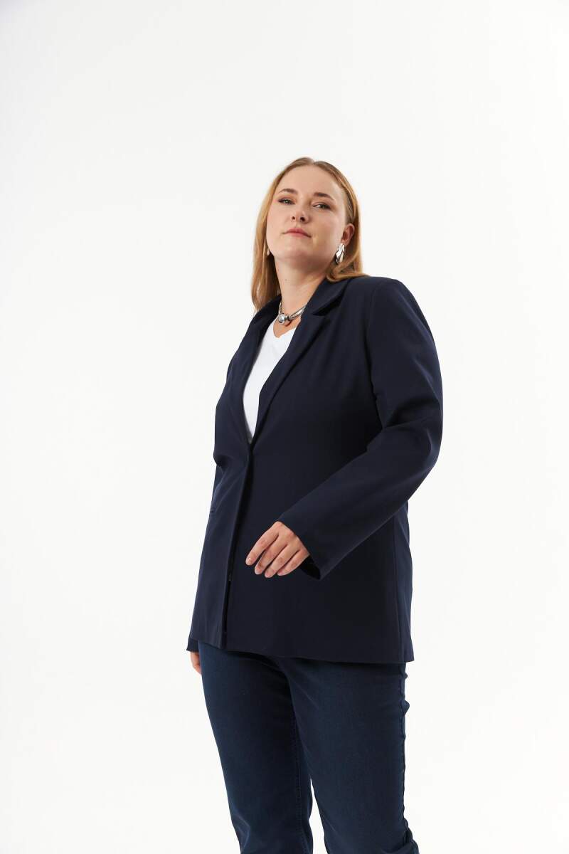 Şıklığın ve rahatlığın buluştuğu büyük beden lacivert fileto cep astarlı ceket, hem günlük kombinlerinize hem de özel günlere zarif bir dokunuş katıyor. Modern kesimi ve kaliteli kumaşıyla stilinizi ön plana çıkarırken, hareket özgürlüğü sunan tasarımıyla gün boyu konfor sağlıyor.