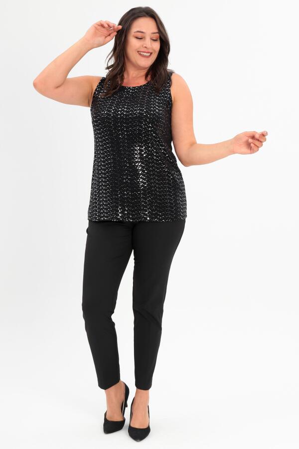 Parlaklığıyla göz kamaştıran,özel kumaşı ve pullu büyük beden bluz sizi zarif kılacaktır. Modern dokuyu hissettirecek özel tasarımla göz kamaştıran etkileyici bir duruşa sahip olun. Parlak siyah kumaşın verdiği etkiyle herkesi kendine hayran bırakır.