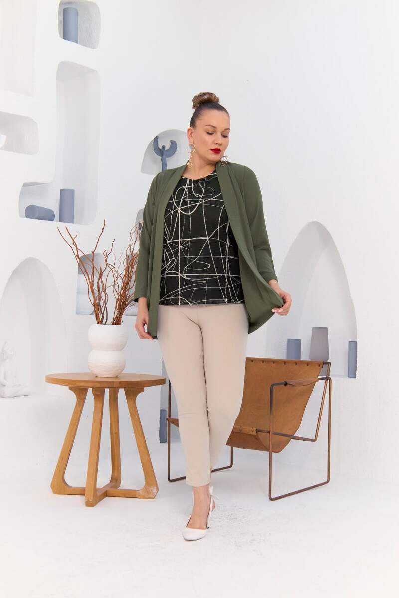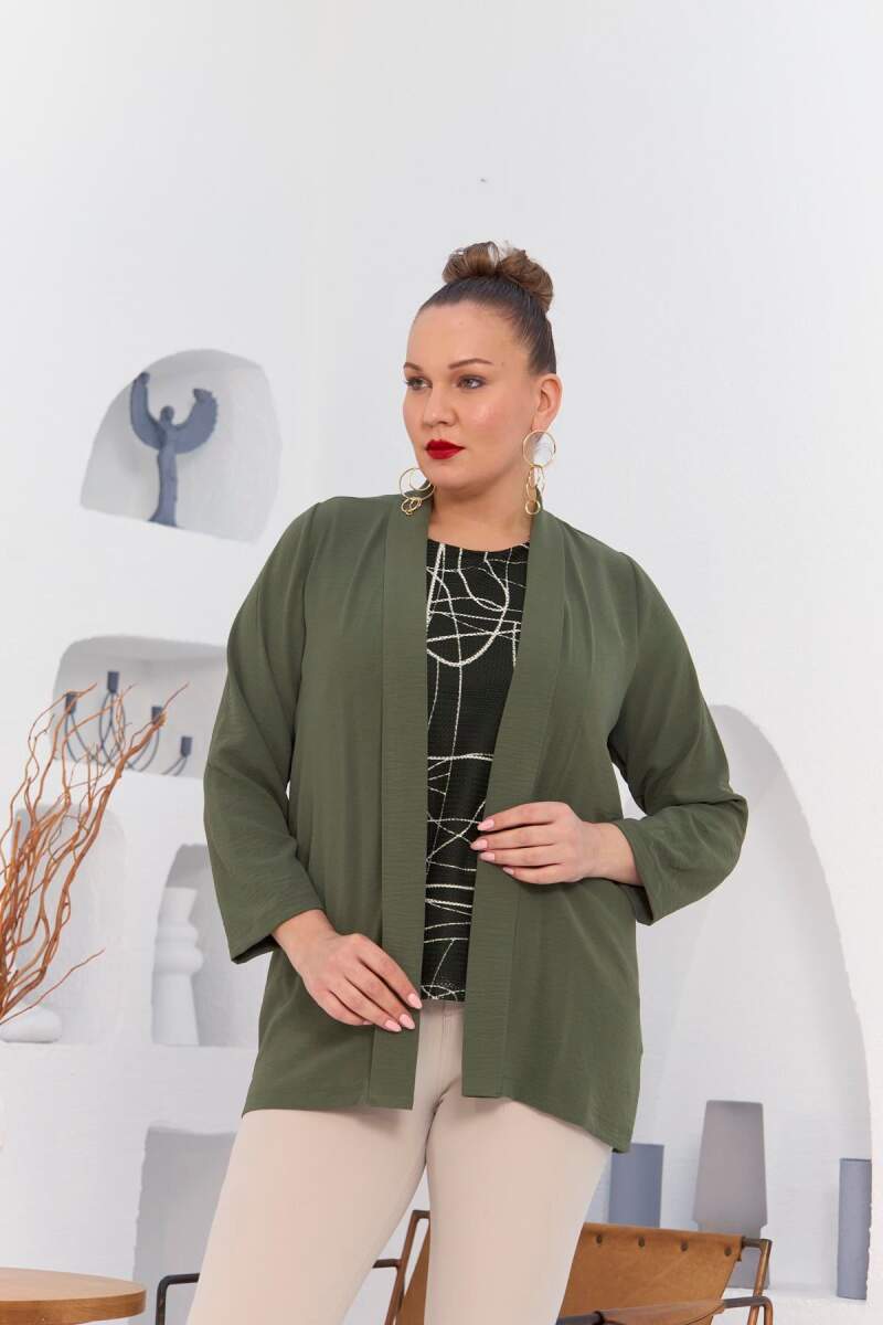 Büyük Beden Haki Ceket Atlet İkili Takım